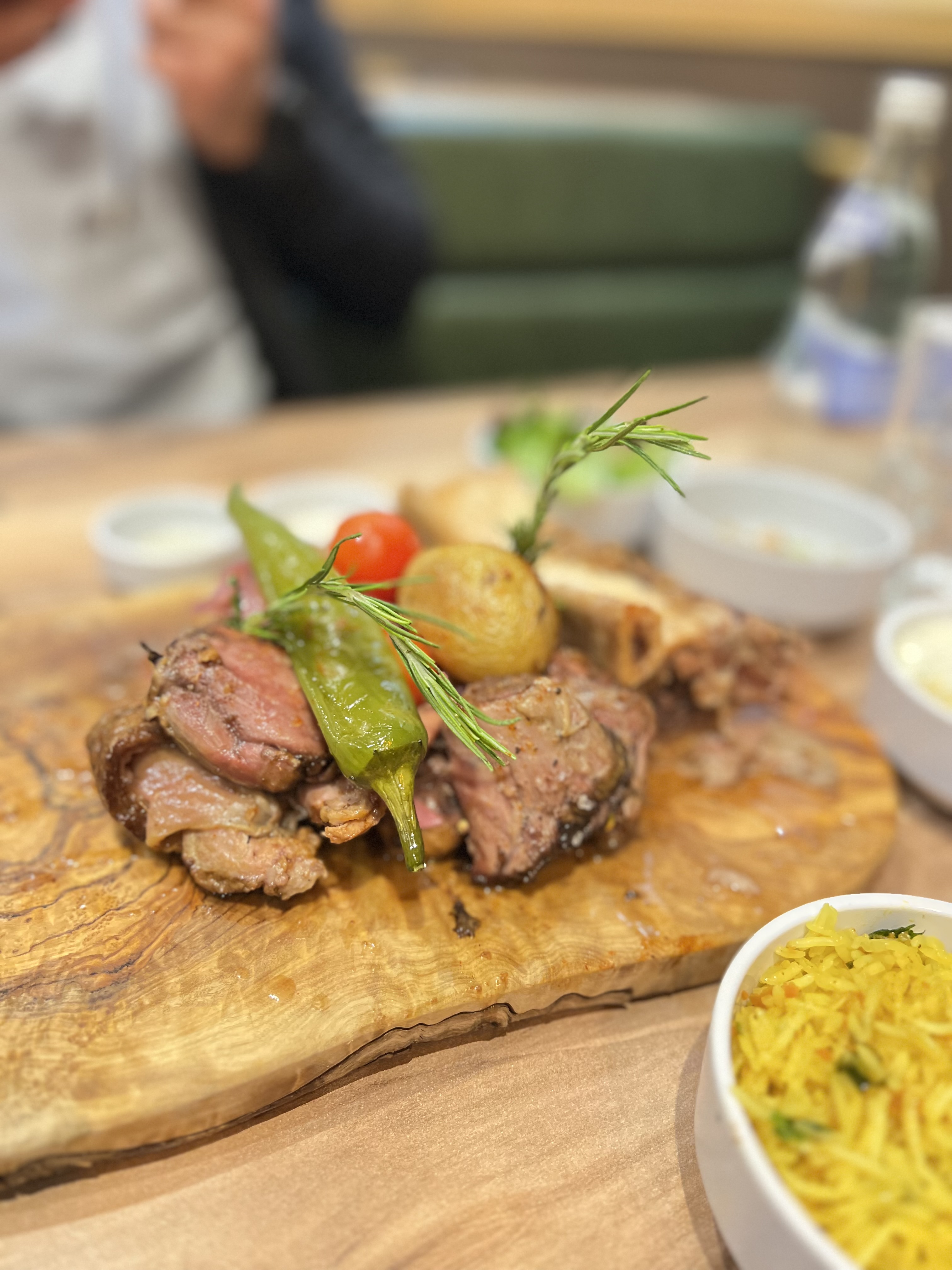Attention beaucoup trop cher: épaule d agneau 34€, souris d agneau 36€, bœuf 34€, boisson 10€, accompagnements dans de petites contenances à volonté que si tu demandes. La viande est sèche, le goût pas terrible et bonjour les ballonnements. Déçu, on s est encore fait avoir par Instagram avec une présentation qui promet sauf que pas du tout… On y retournera plus,trop cher pour des prestations de cuisine classiques.