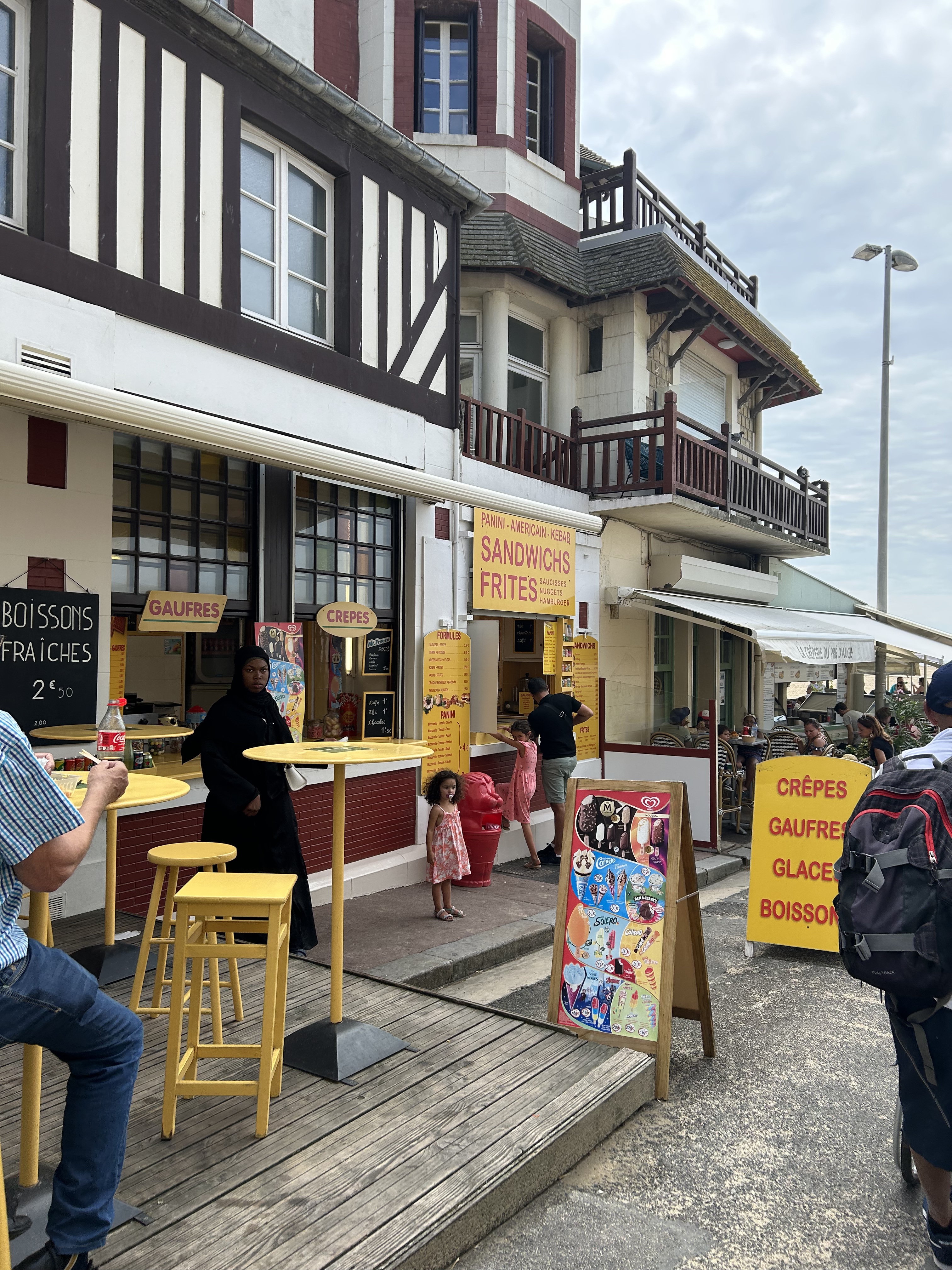 Snack de plage, bon rapport qualité prix, aussi bien que les restos sur les planches sans service a l'assiette bcp plus cher, la chantilly est maison, bon accueil et gérante aimable. Je recommande.