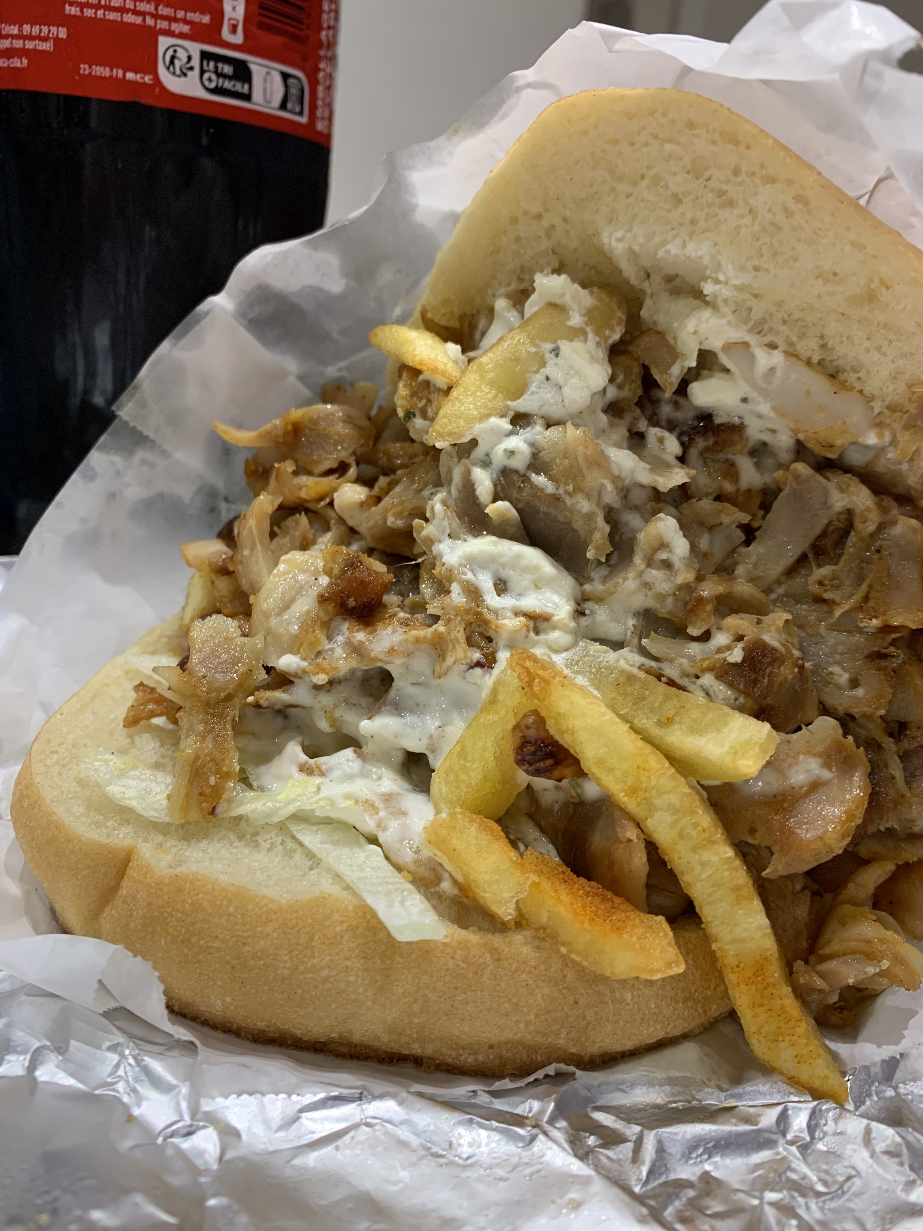 Un kebab proche de chez moi et très bon a chaque fois que je viens chez eux je n'ai plus faim ensuite pour seulement 8€50 et les frittes séparé du kebab est poin d'être une mauvaise idées
