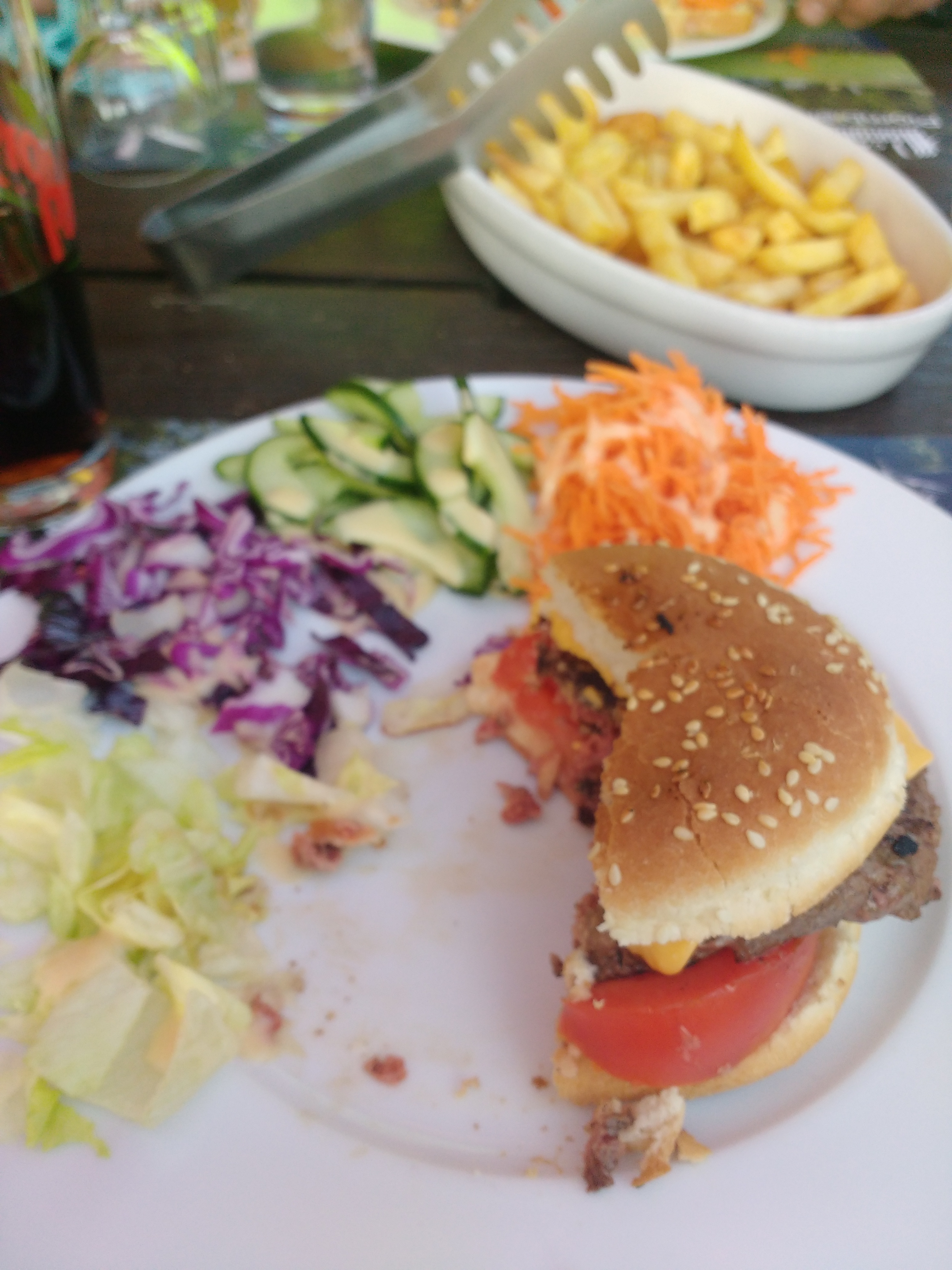 Des gens super sympathiques. C'était une journée chaude, des parasols ont été immédiatement fournis pour s'assurer que nous ne soyons pas exposés au soleil. La nourriture était très savoureuse ! Aussi bon marché. Et belle vue sur le lac.