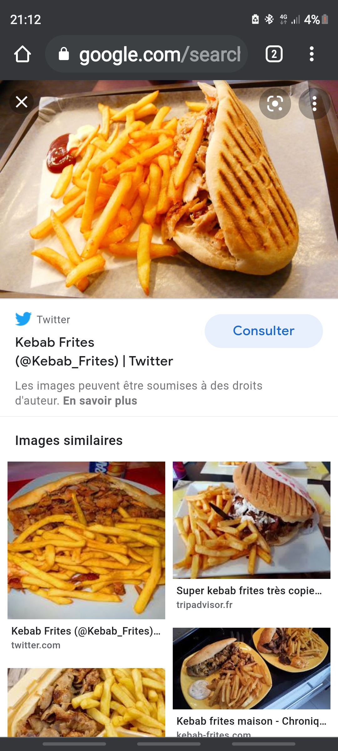 jai demandé un kebab frite voilà le résultat ! obligé de faire demi tour pour avoir un kebab frite comme il se doit faite attention ⚠ à votre commande avant de partir et stipulé bien des frites 🍟dans votre kebab . la première photo kebab de la bruche et la 2 photo ke kebab que je voulais