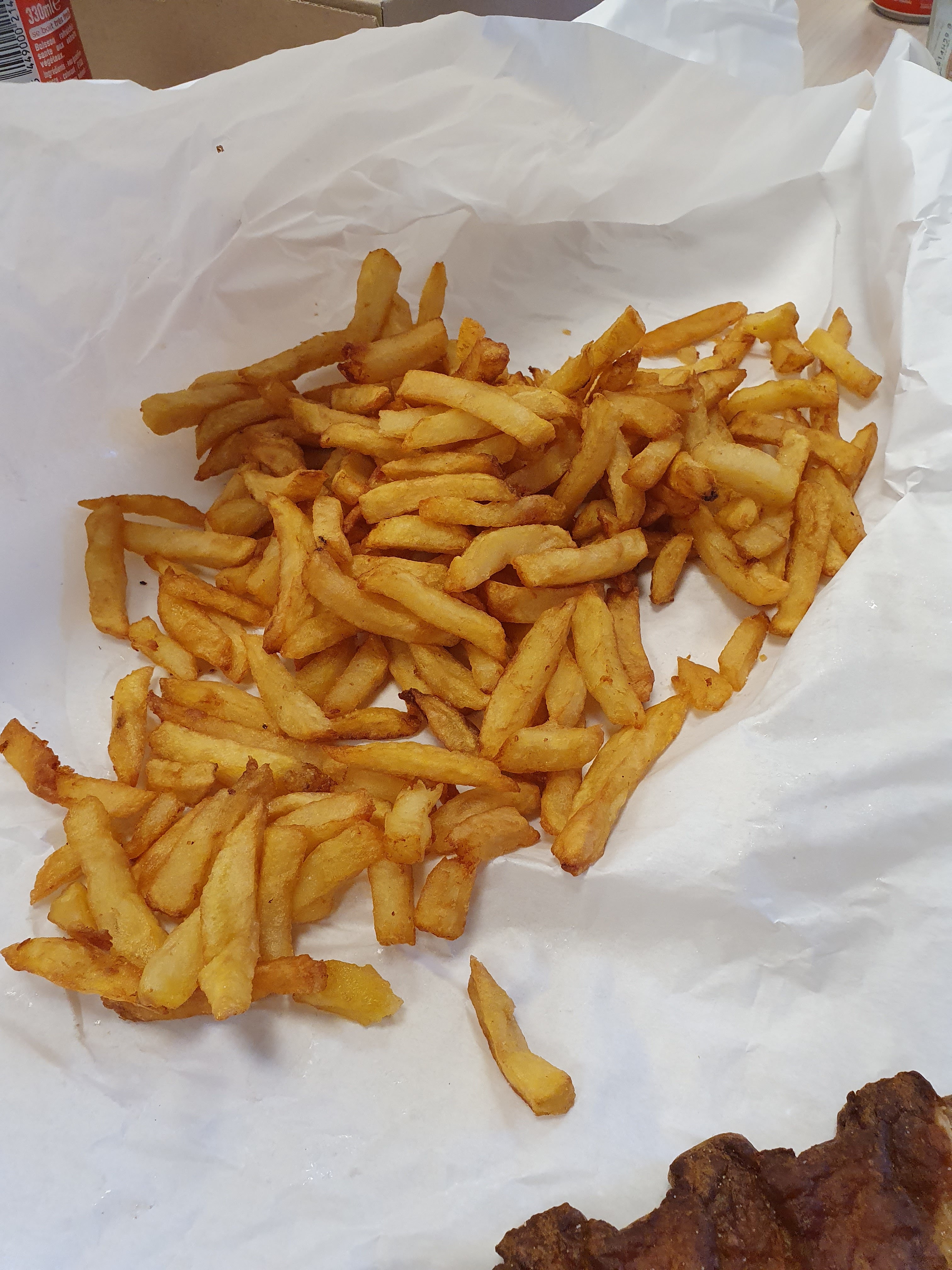 Très bonnes frites croustillantes, personnels très agréable. Bien servi et rapport qualité prix excellent je recommande.