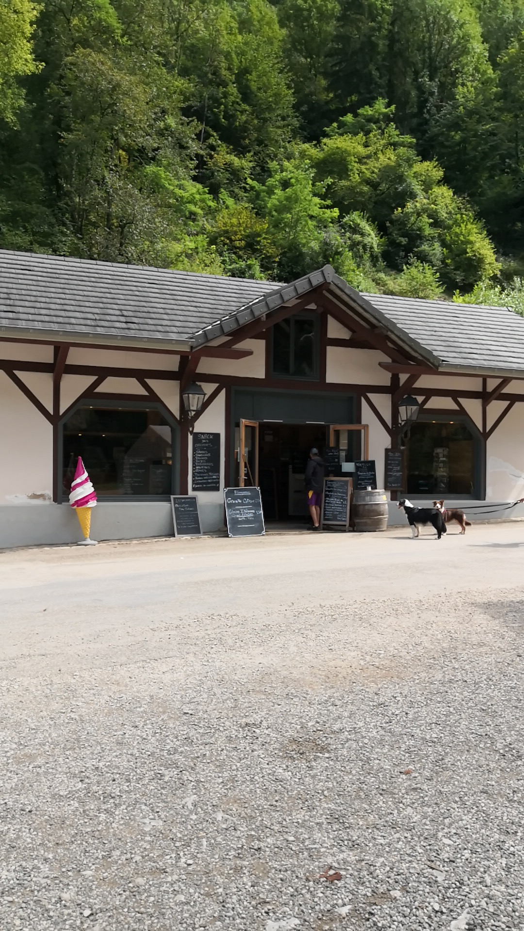 Franchement pour notre première fois dans le jura, tout était parfait jusqu'à la sortie des grottes ou nous sommes allés nous restaurer avec un couple d'amis et nos enfants au snack des cascades. Nous étions 4 adultes et 2 enfants de 4 ans . Nous avons commandé 5 frites dont une avec saucisse du Doubs a 8€50 il y avait aussi 2 panini et surtout et c'est là que ça devient marrant une planche de charcuterie double a 25 € avec produits du terroir lol.a savoir que L'assiette simple est a 14 € . Le type nous ramène une planche avec une saucisse couper en deux ,quatre morceaux de charcuterie deux carrés de beurre et quatre petits morceaux de fromage avec du conté qui n'en n'était pas .. Franchement a la vue de cette planche je me suis dit ta la deuxième qui arrive derrière lol . Nous n'avons pas pris de boisson nous étions armée. Nous avons payé 75€ . De plus ce type a été odieux quand mon amie a demandé des gobelets pour les enfants il nous a dit pas de boisson pas de gobelets avec un rictus que j'aurais aimé vite lui effacer. Bref le jura c'est magnifique mais ce snack une grosse arnaque et ce type ne mérite pas son 💰