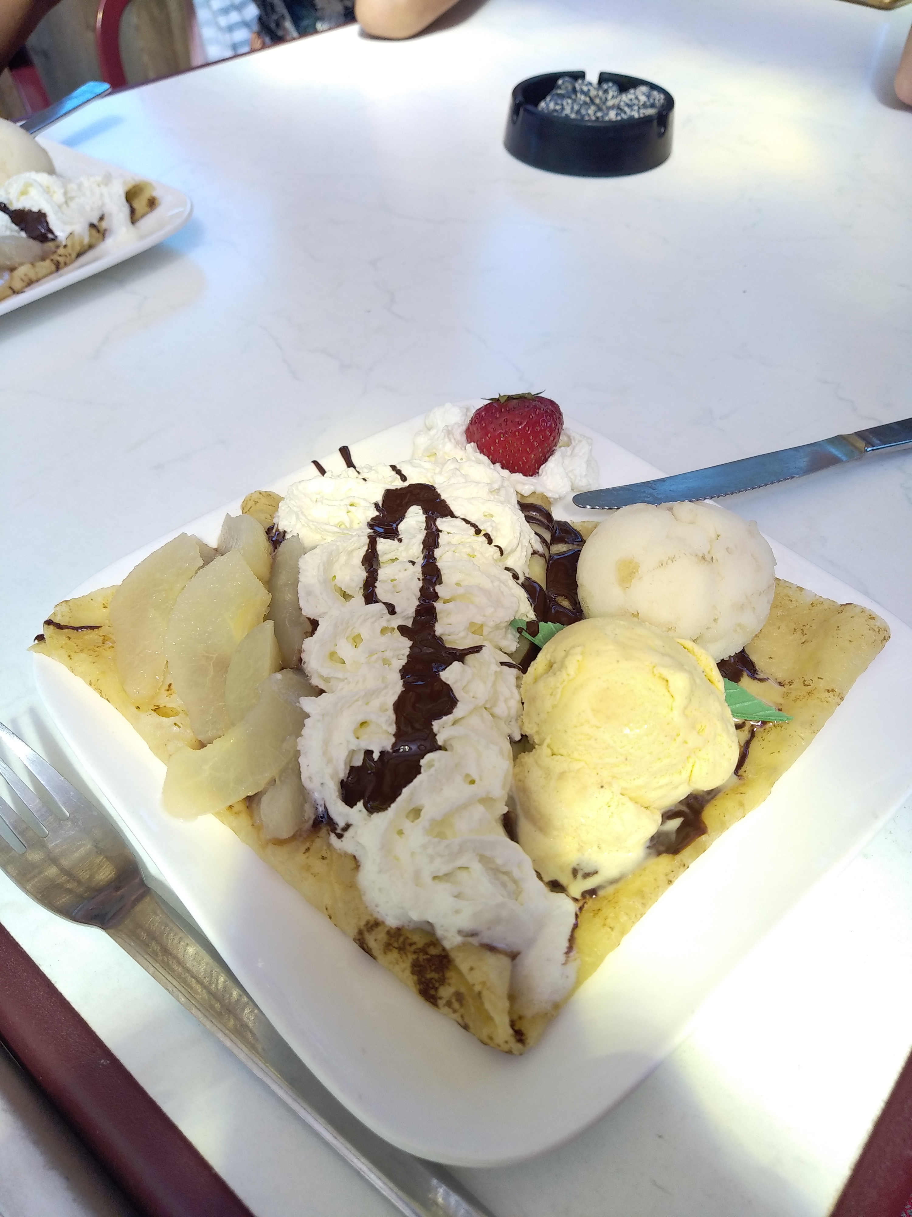 Bel endroit mais la qualité es vraiment médiocre on as l'impression de manger de la chantilly fait avec de la poudre, les serveurs(euse) fumés sans pression a côté de votre table a 4 5 comme dans une réunion Tupperware je trouve sa très limite pour un restaurant Pas de CB ? On se demande où tout le liquide va Le tpe doit être bien caché ils savent bien comment profiter des touristes. Franchement autant vous faire vous même un bon jambon beurre vous même. Et la cerise sur le gâteau on vous sert de l'eau dans des gobelets en carton.