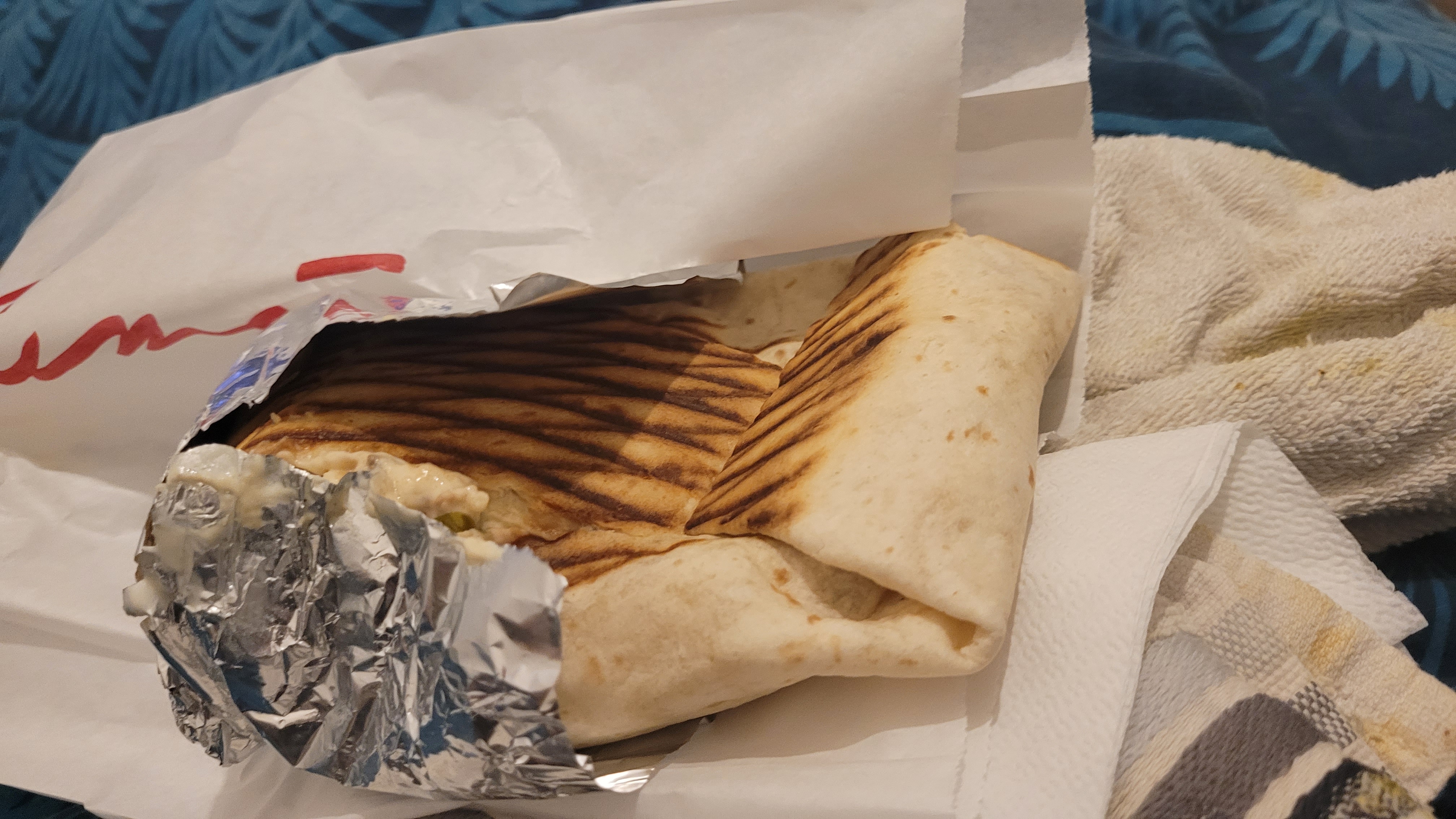 Je vais être honnête , commandé à 21h livré à 23h à seulement 2km c'est abusé quand même 😱 pas de frite à côté quelques une à l'intérieur des tacos sinon j'avoue que les tacos été très bon et bien garnis