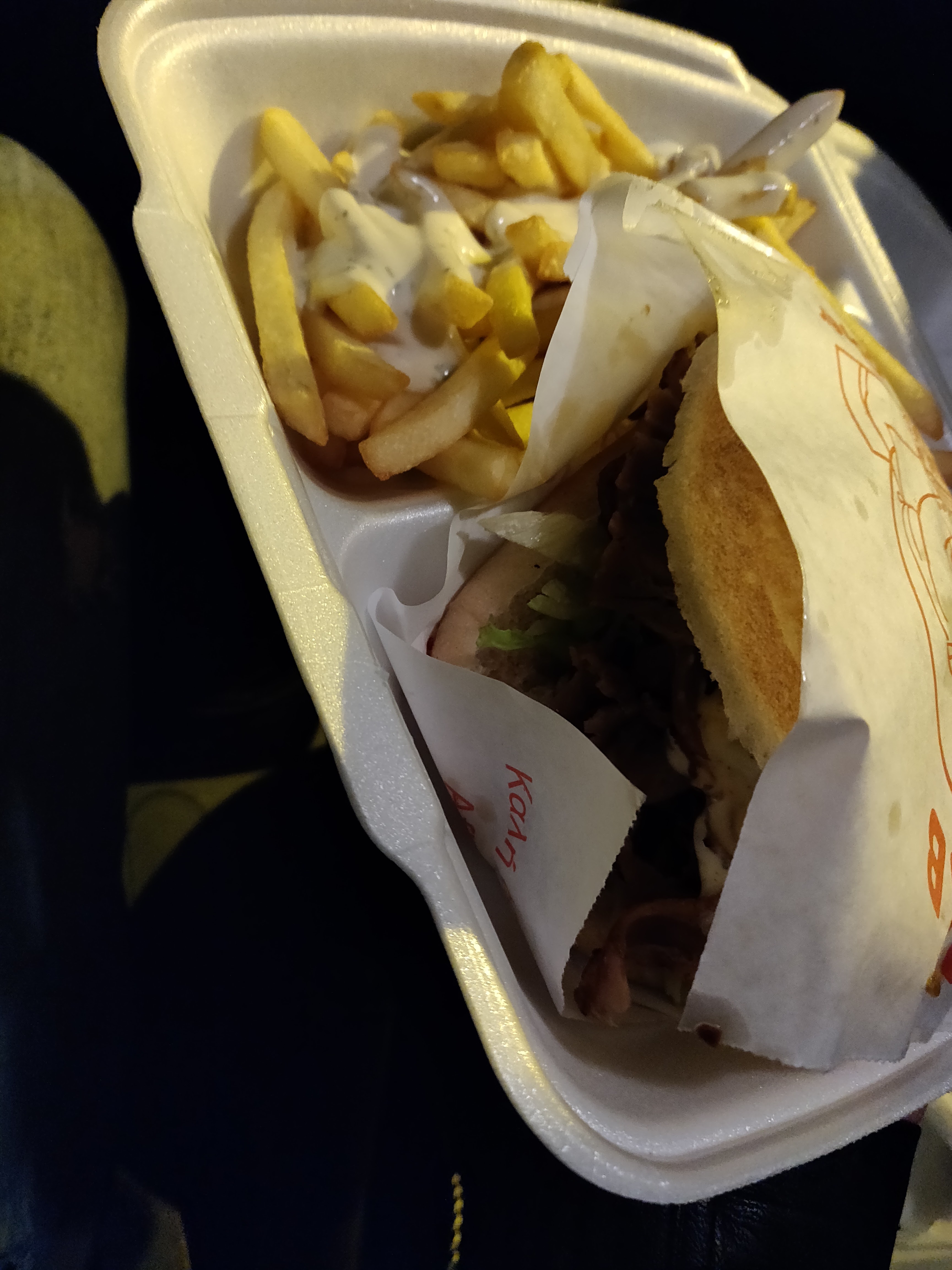 Point positif : Ils sont très rapides et ponctuels Je les ai appelé 4 minutes avant d'arriver À mon arrivée c'était prêt , j'ai bien mangé et je n'est pas été malade J'ai pris un kebab avec frites et une boisson 😁 ( Place de Parking disponible devant) POINT NÉGATIF : peut être un peut plus de frites aurait été bien Bravo pour m'avoir préparer mon kebab a emporter rapidement 😉👍🏻👍🏻👍🏻👍🏻