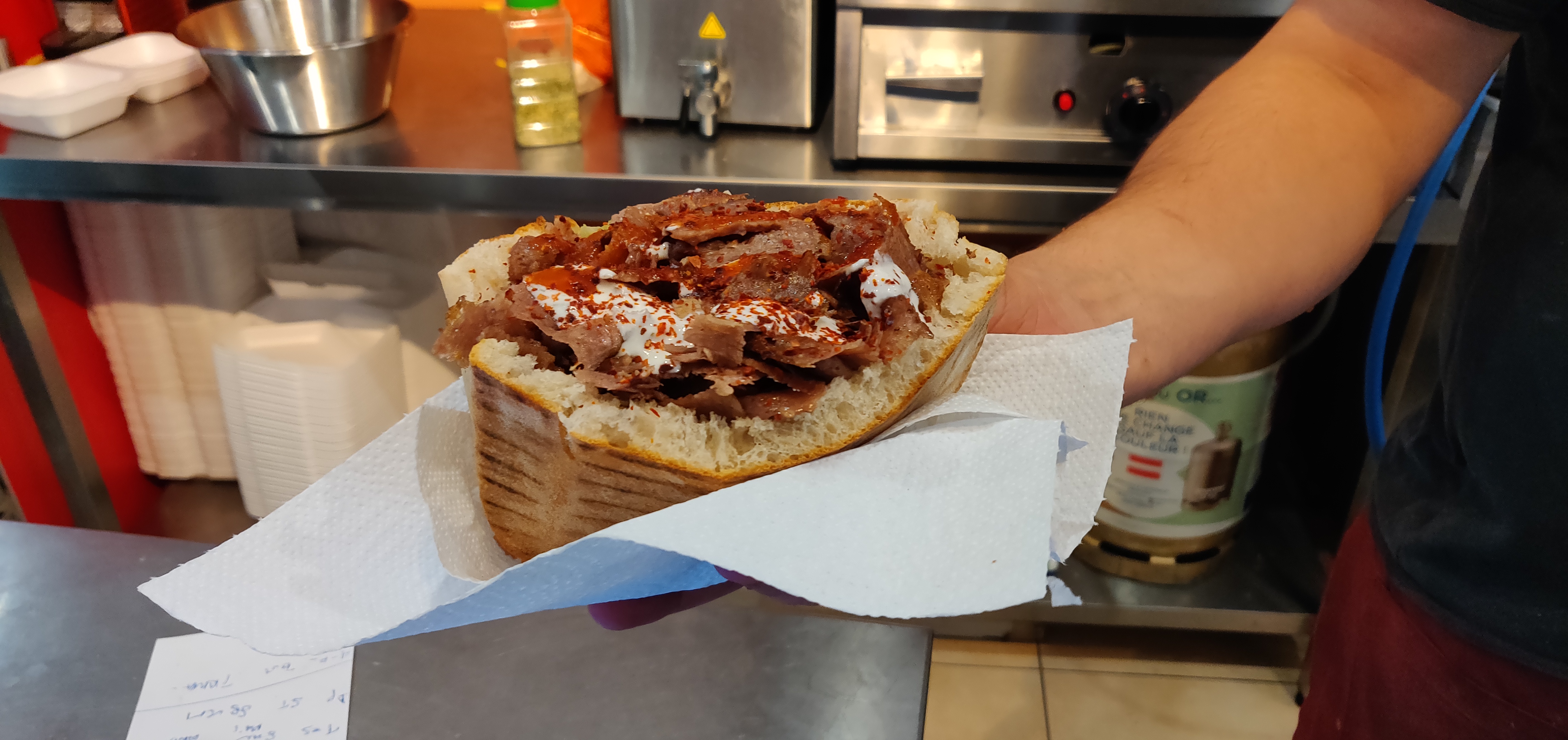 Kebab très bon, la viande est bonne ainsi que le pain. Par contre la sauce blanche n’est pas une réussite, elle manque de goût… dommage
