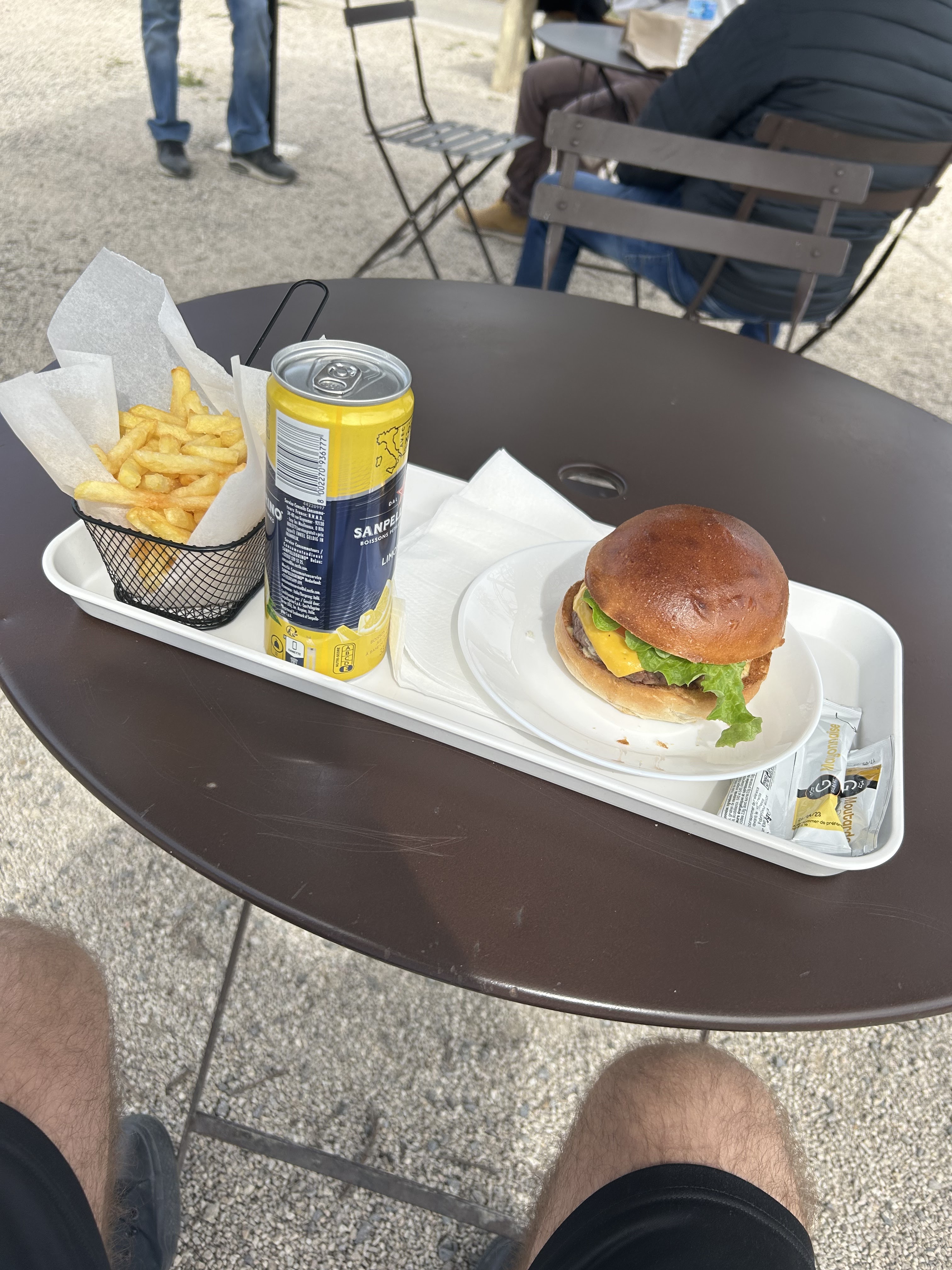 Très bonne adresse, avec un personnel adorable Expérience en famille sur le tard vers 15h et heureux de le trouver ouvert. La viande hachée est délicieuse et vient de boucher du village, des produits de qualité pour un prix maitrisé Comptez 7,5€ le burger maison Simple a trouver parking gratuit Terrasse ombragée à dispo Un grand merci pour les conseils de visite de la région et bonne continuation 👍