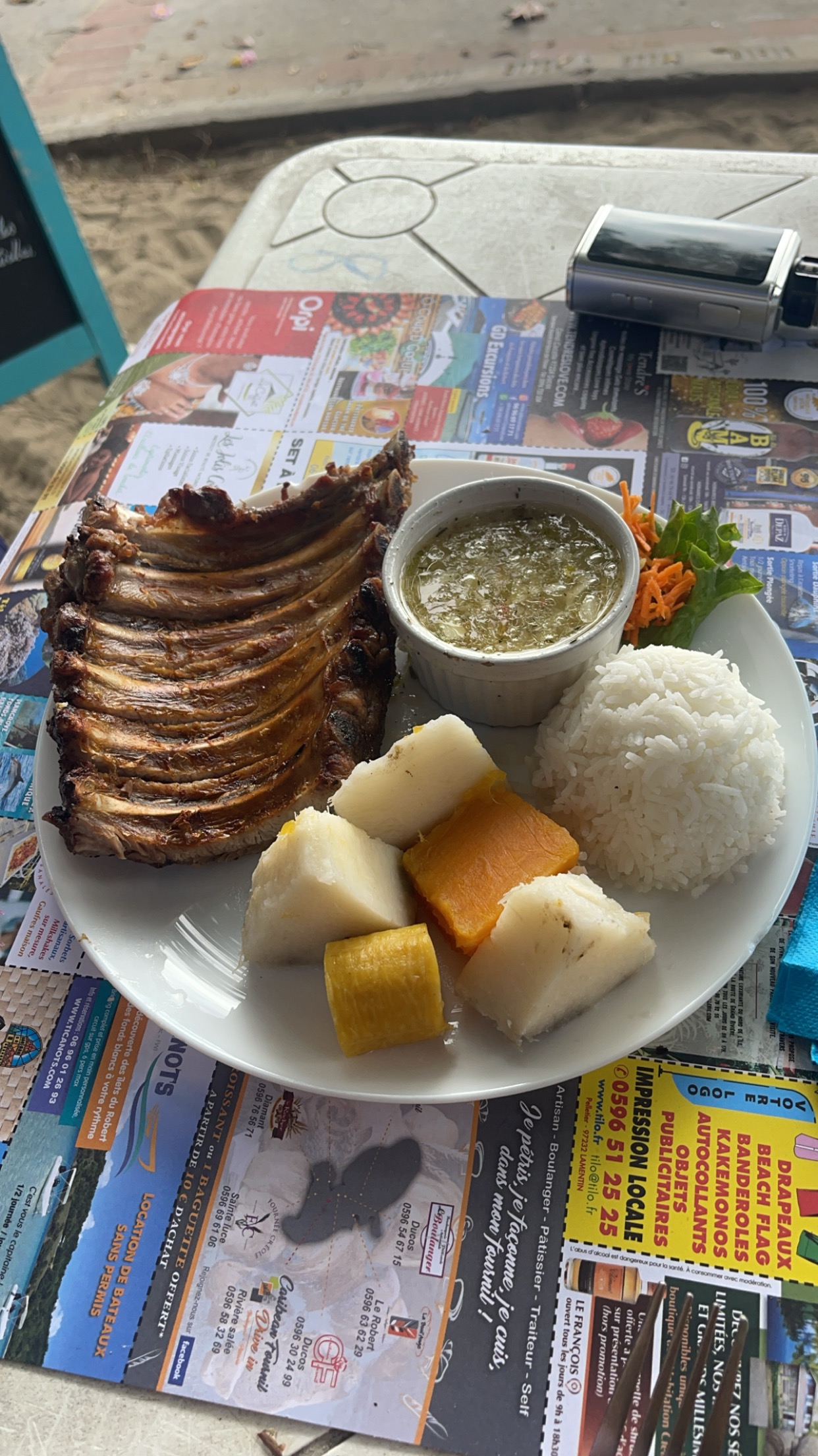Mérite amplement les 5 étoiles , autant par l'accueil, les conseils que par la qualité des produits servis , la Pina colada la meilleure de ma vie , les accras juste sublime et l'assiette créole vraiment excellente. Suivi d'une glace artisanale savoureuse. Je recommande 100% ce snack de plage les pieds dans le sable et pour un prix très très raisonnable.