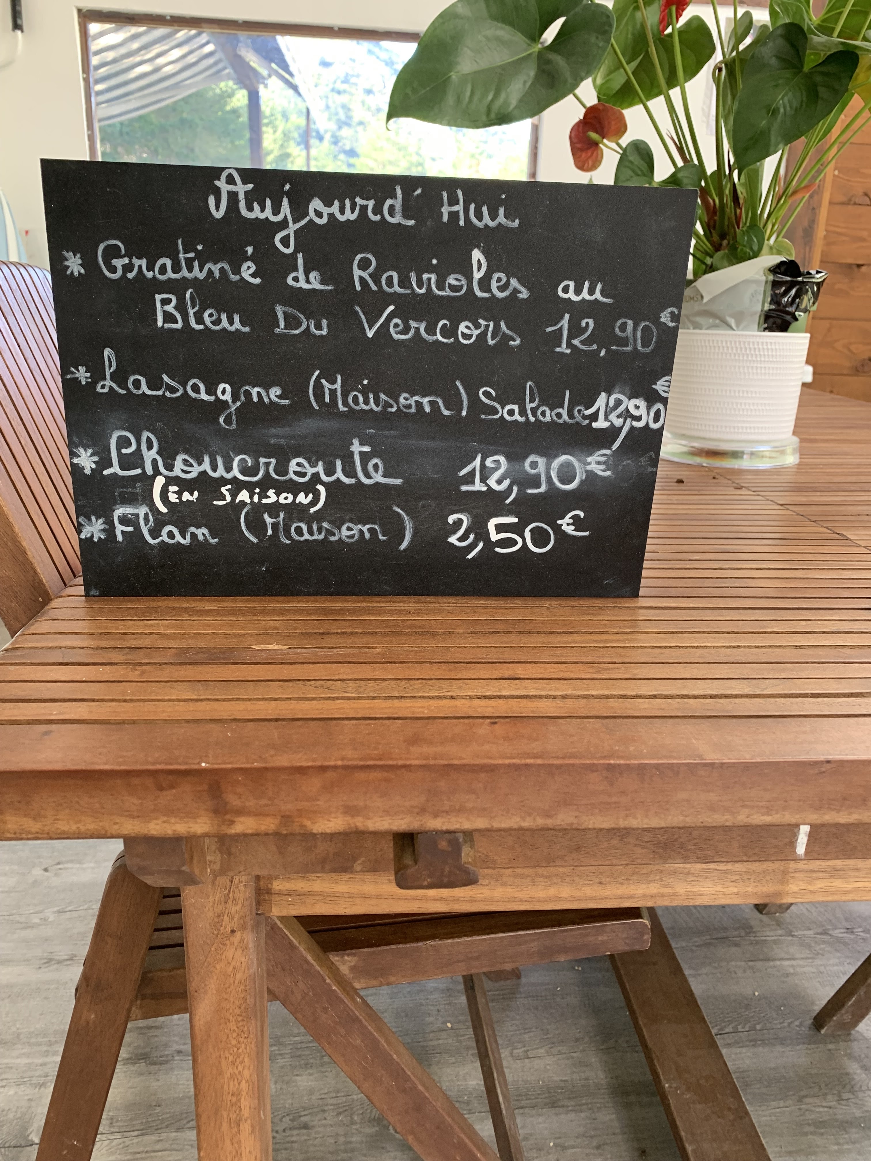Propriétaires très sympathique, carte simple mais belle assiette, copieuses et raffinées. Pause goûté très agréable, lieux ombragé. Agréable avec des enfants.
