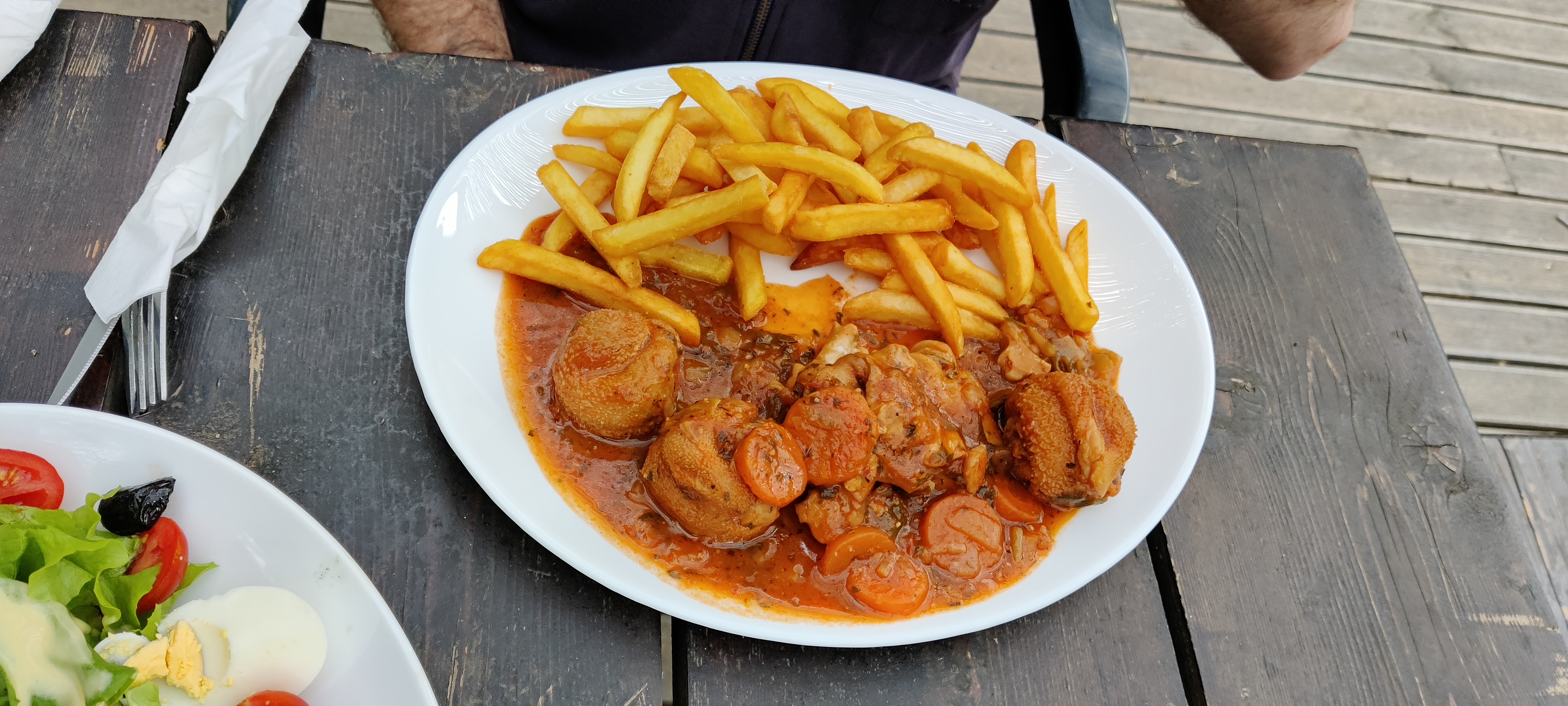 Nous sommes passés devant le petit café, avons cherché quelque chose à manger, étonnamment le gratin de ravioles, SUPER SURPRENANT GOÛT. Même les frites sont préparées sur place. Recommande fortement