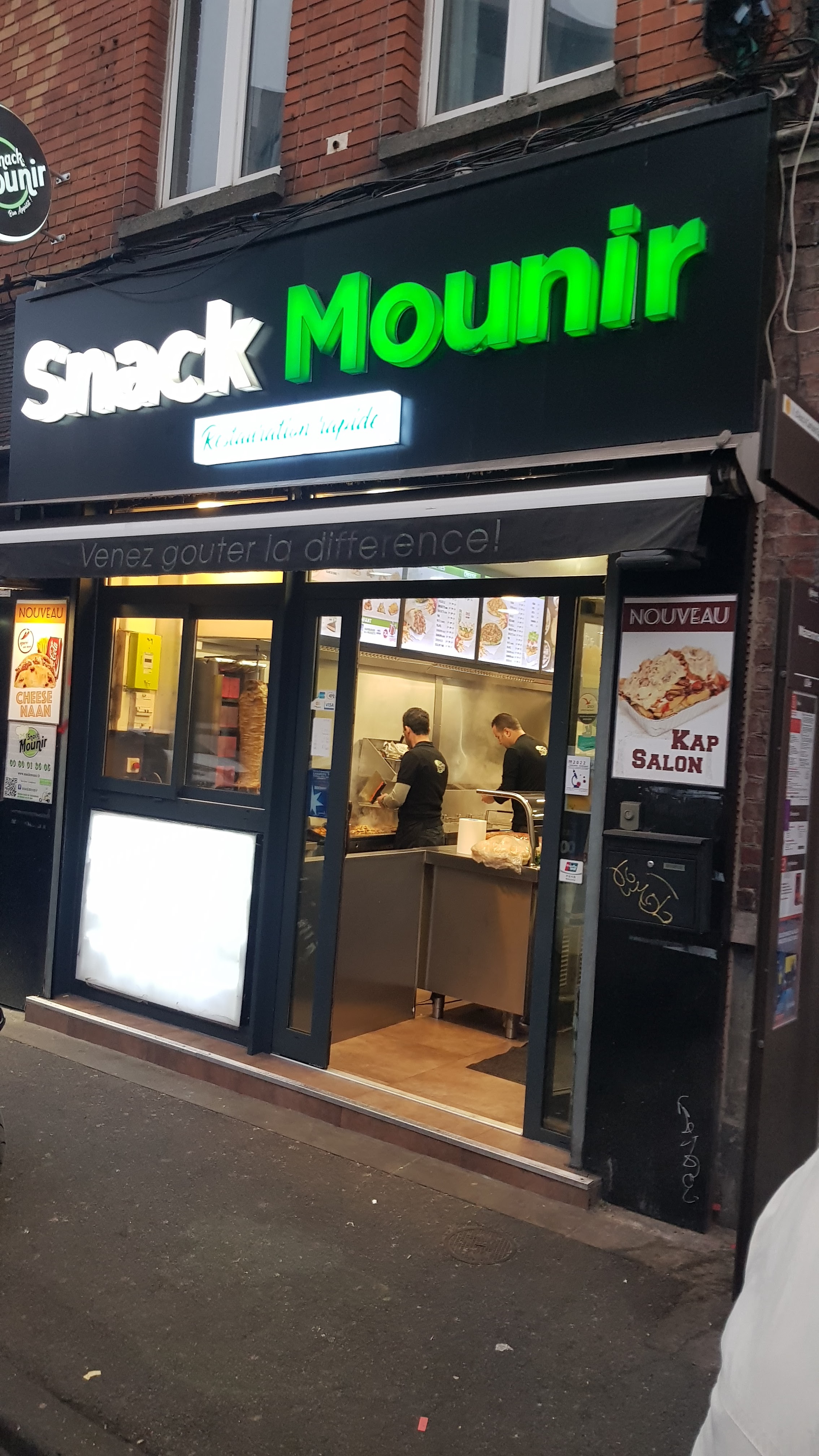 Bonjour le meilleur Snack de Lille c Snack Mounir je mange chez lui depuis 5 ou 6 ans toujours bien servi et le personnel est souriant gentil je conseille tout le monde de venir manger chez Snack Mounir