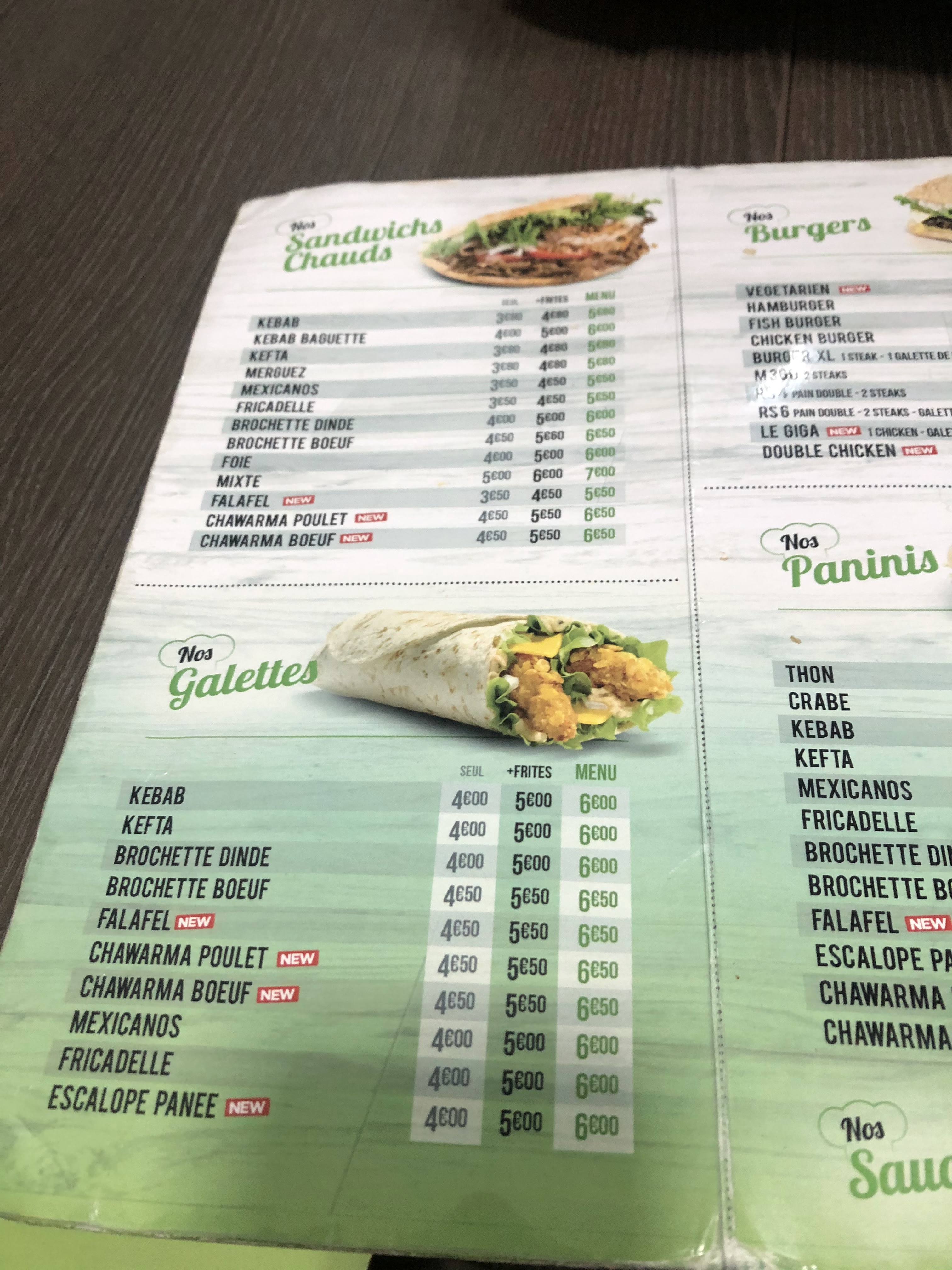 Il te propose shees nan sur la carte alors qu’il en font pas j’ai pris galette elle était pas terrible les frites pareilles je pense que j’aurais dû prendre pain baguette qui avait l’air pas mal en tout cas je suis déçu de ce snack de passage à Lille je me suis arrêté là bas vu que je connaissais pas la ville