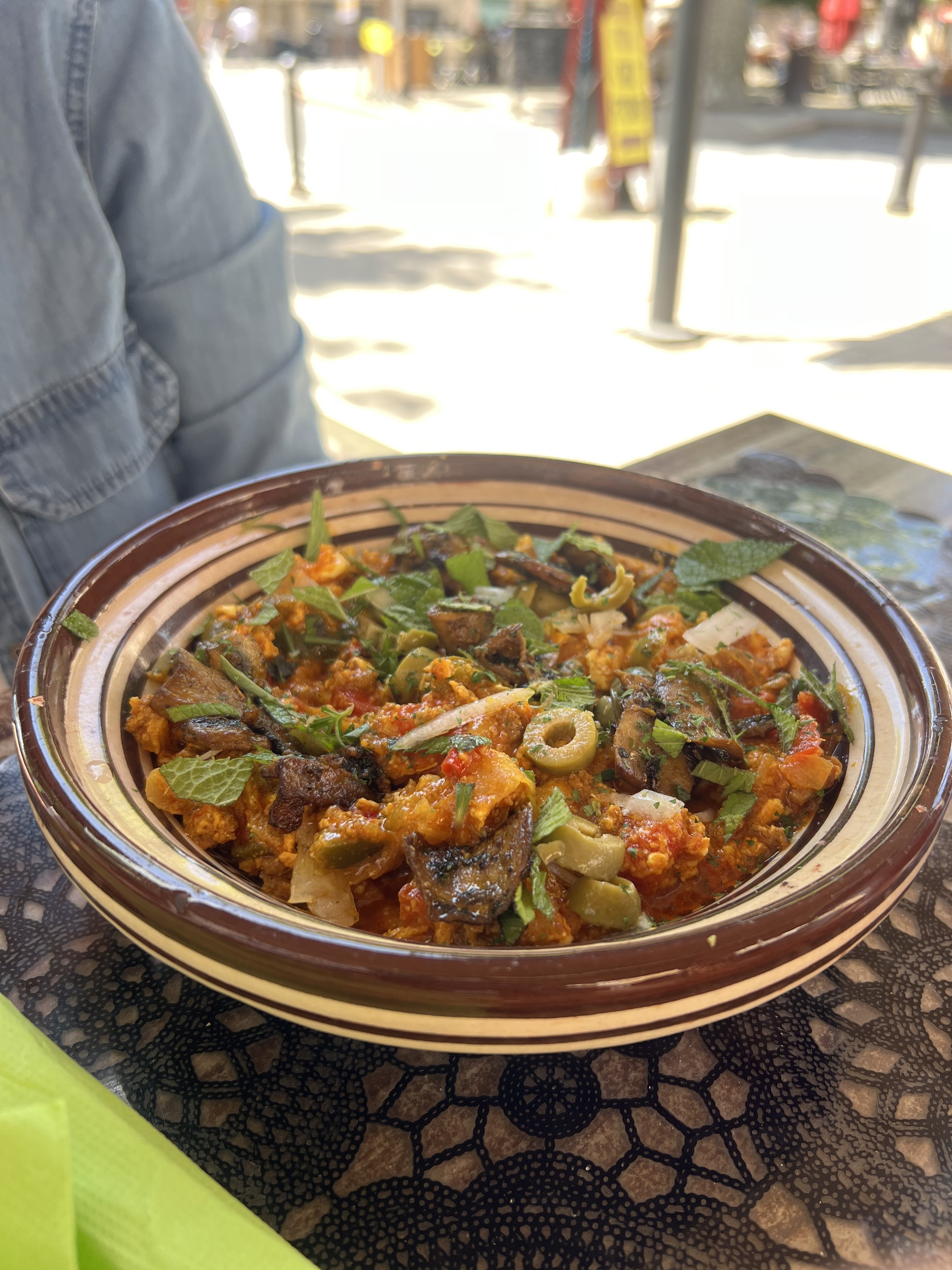Dé-li-cieux, surprenant de part sa qualité à la fois des galettes lybiennes et des frites au paprika, en plus en terrasse au soleil c'est parfait !