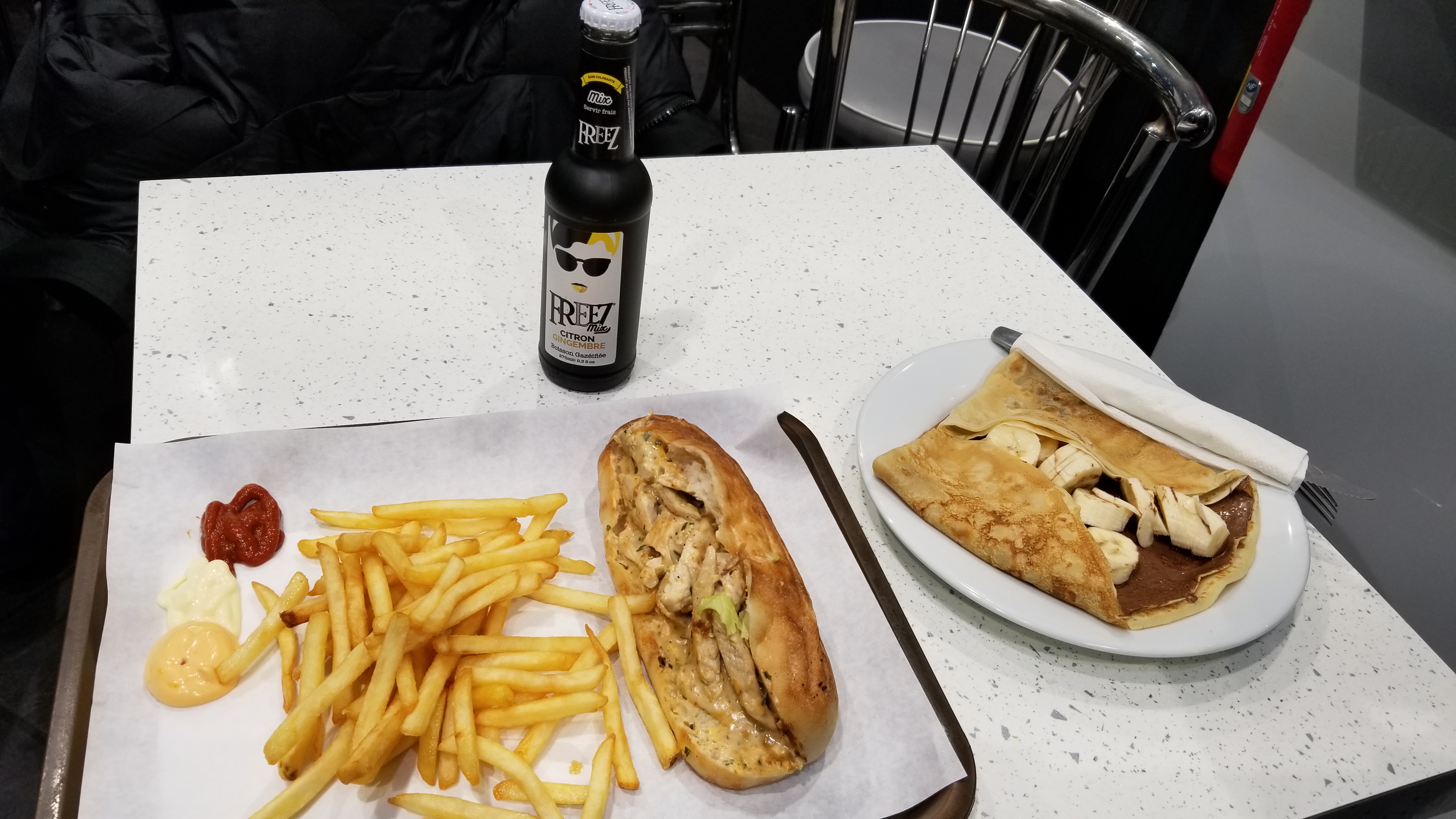 Service rapide donc très peu d'attente, les crêpes sont très bon et les sandwichs de qualité pour un fast food.