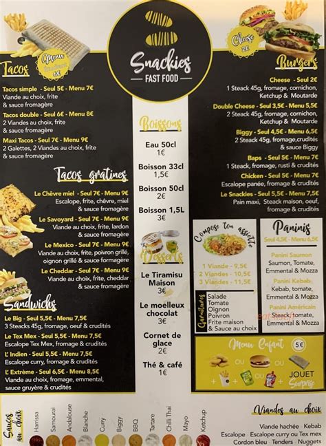 Pour une première fois , Le gérant de l'établissement snackies très sympathique, Établissement très propre. Très bon rapport qualité prix. Les tacos sont bien garnis .