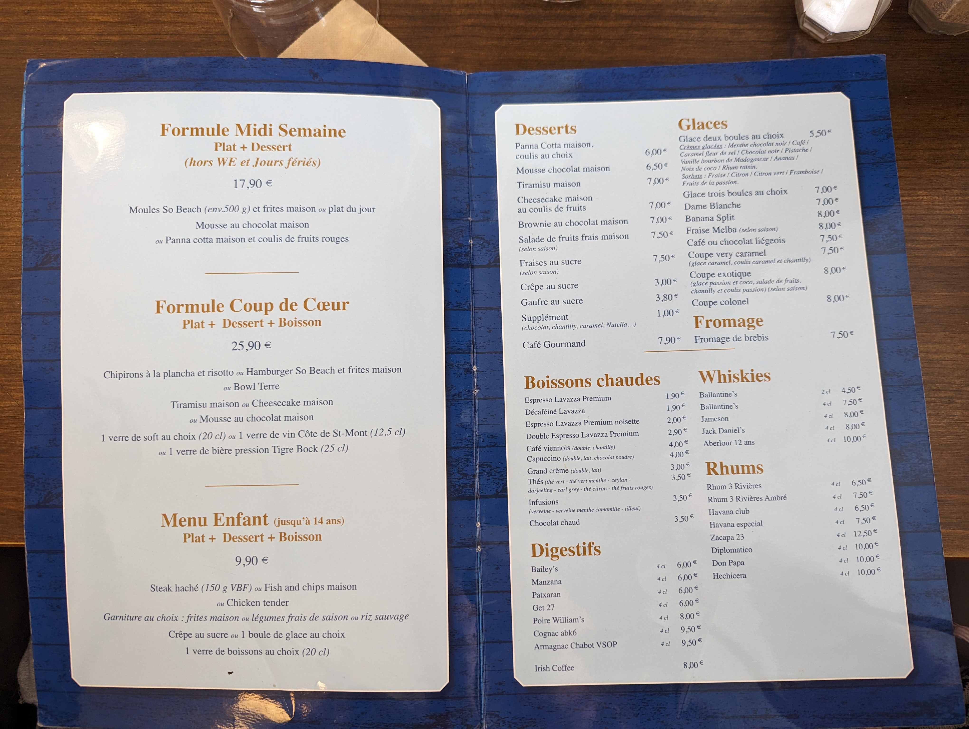 Prix correct pour un restaurant de plage. Plats bien servi. Il manquait juste une peu de légumes dans les menus enfants.