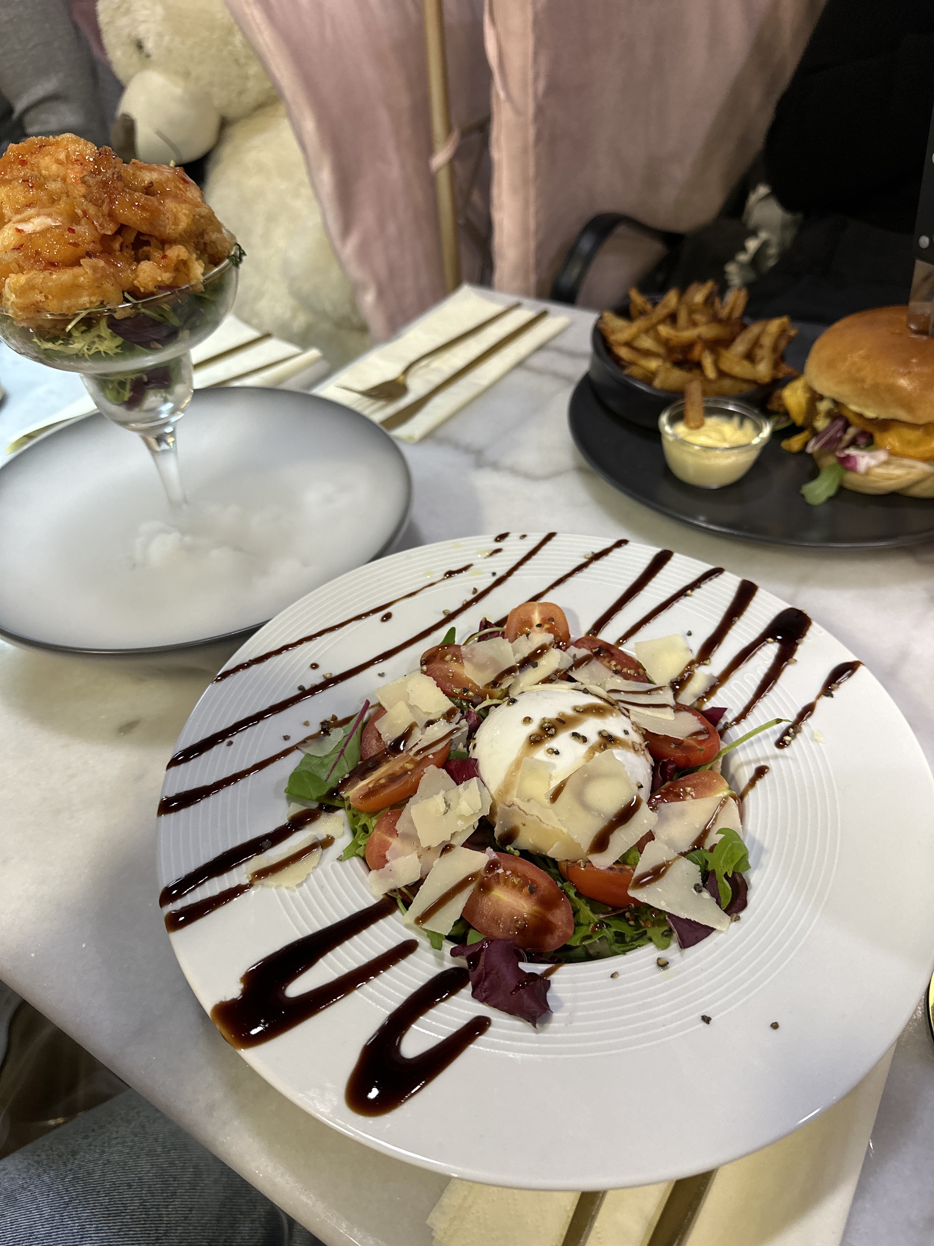 Pour une première fois !!! A voir et faire absolument 🥰🥰🥰🥰!!! J'y suis allée en soirée,pas trop de monde , ambiance intimiste un côté très girly rose gros nounours 🐻pour des photos génial📸📸 !!! L'autre côté en noir et blanc, sophistiqué !!! Les entrées sont délicieuses, essayer le cocktail Bora-Bora 🍹🍹 !!! Dommage pour ma souris d'agneau 😭, repas délicieux !!! Je recommande vivement !!!! Et apparemment le Brunch est à faire !!!