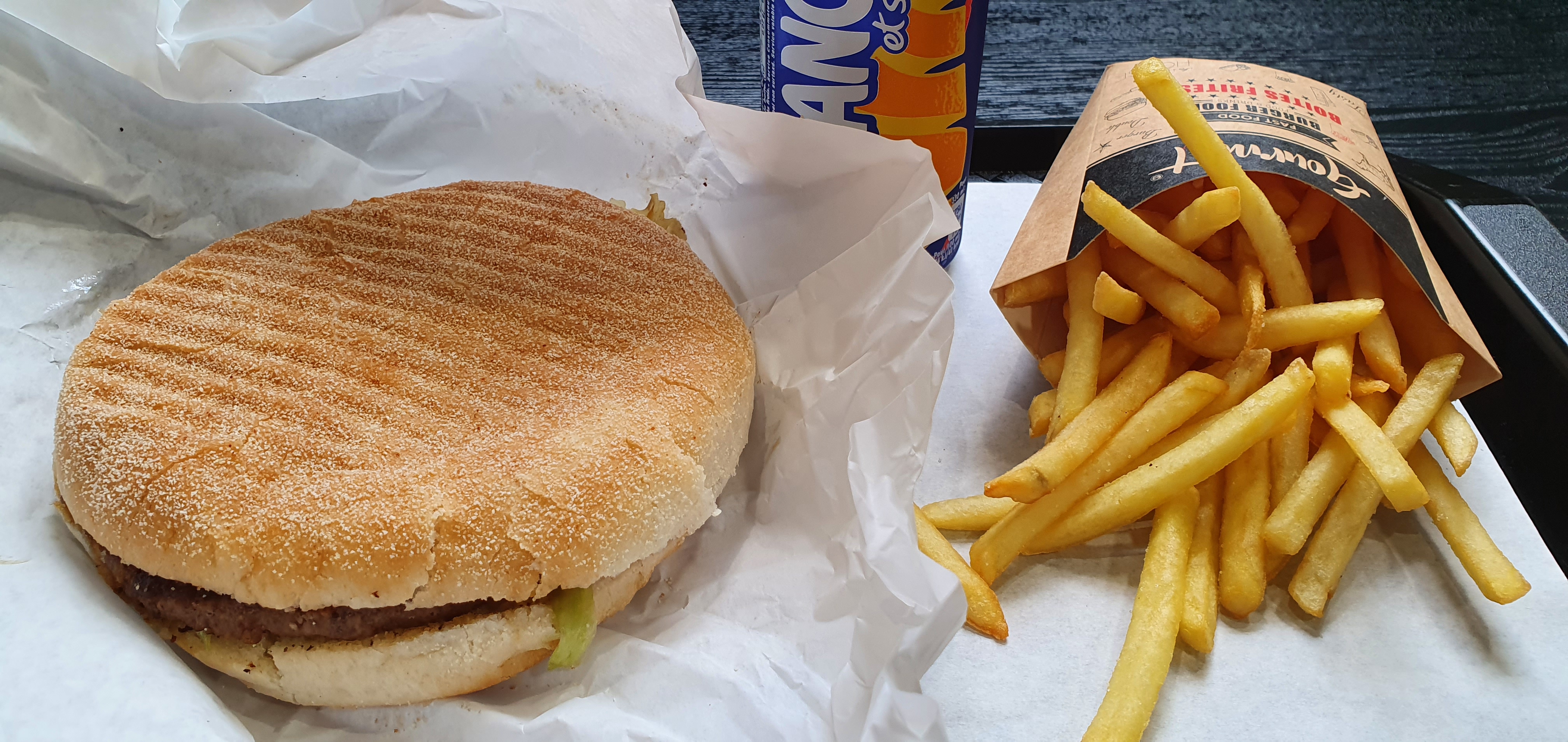 Nouveau fast food qui remplace le défunt burger s. 2 passages en une semaine La première fois Restaurant vide 7 personnes clients Attends de 26 minutes pour un simple menu. Ce jour en famille vers 20h00 ce vendredi 2509 La plupart des tables occupés 24 minutes avant que le bip sonne pout aller récupérer le plateau.. Frites ras Hamburgers copieux Mais servis entre froid et tiède...... Boissons servies en cannettes Propreté de la salle a revoir.. Toilettes hommes et femmes .. Un gros effort a fournir