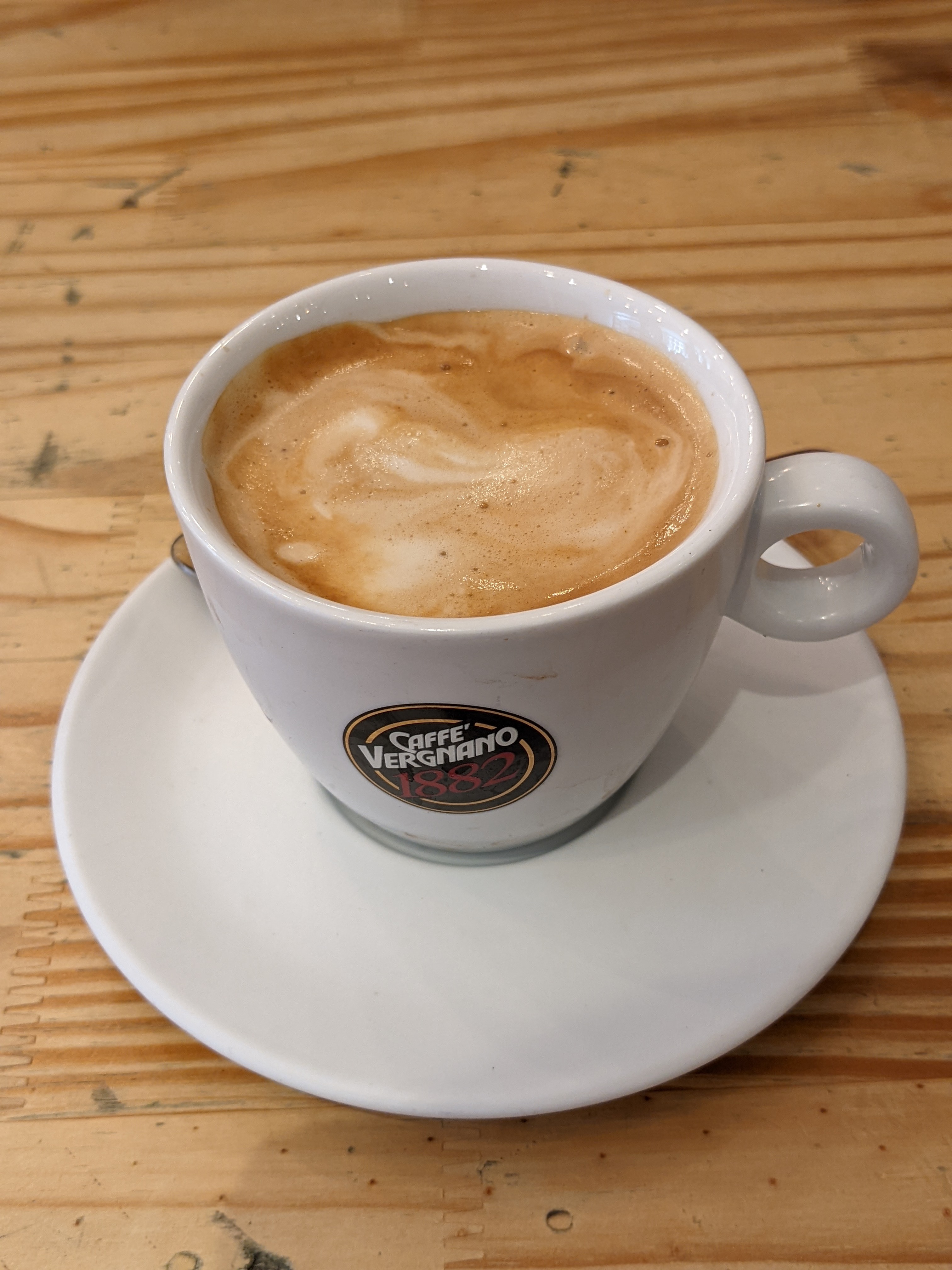 Étrange sentiment de déranger à notre arrivée, tant l'accueil n'était pas chaleureux, voire froid. Granola, café et roulé à la cannelle pris à emporter : ici aussi assez déçu, pas de fruits frais dans le granola et roulé à la cannelle assez gras. 🥐