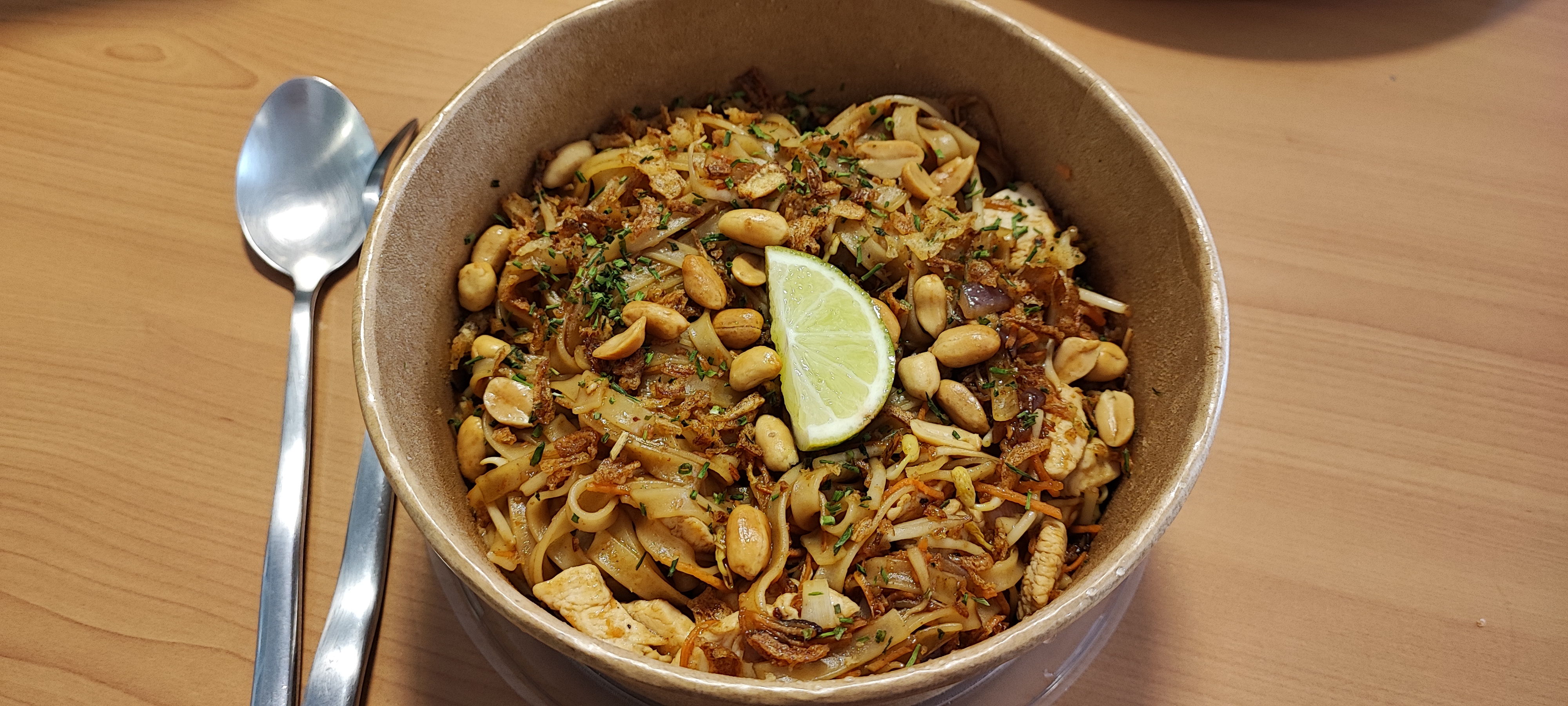 (Viande Halal) De séjour sur Perigueux, je me suis laissé tenter par deux plats. Un Pad Thaï : Savoureux. J’ai vraiment aimé ce plat. Un bon équilibre entre les ingrédients et les saveurs. Un Krousty poulet sauce blanche, bon plat mais il manque selon moi un petit truc comme des légumes marinés ou une sauce « spécial » pour le rendre incontournable. Sinon, le personnel a été très accueillant.
