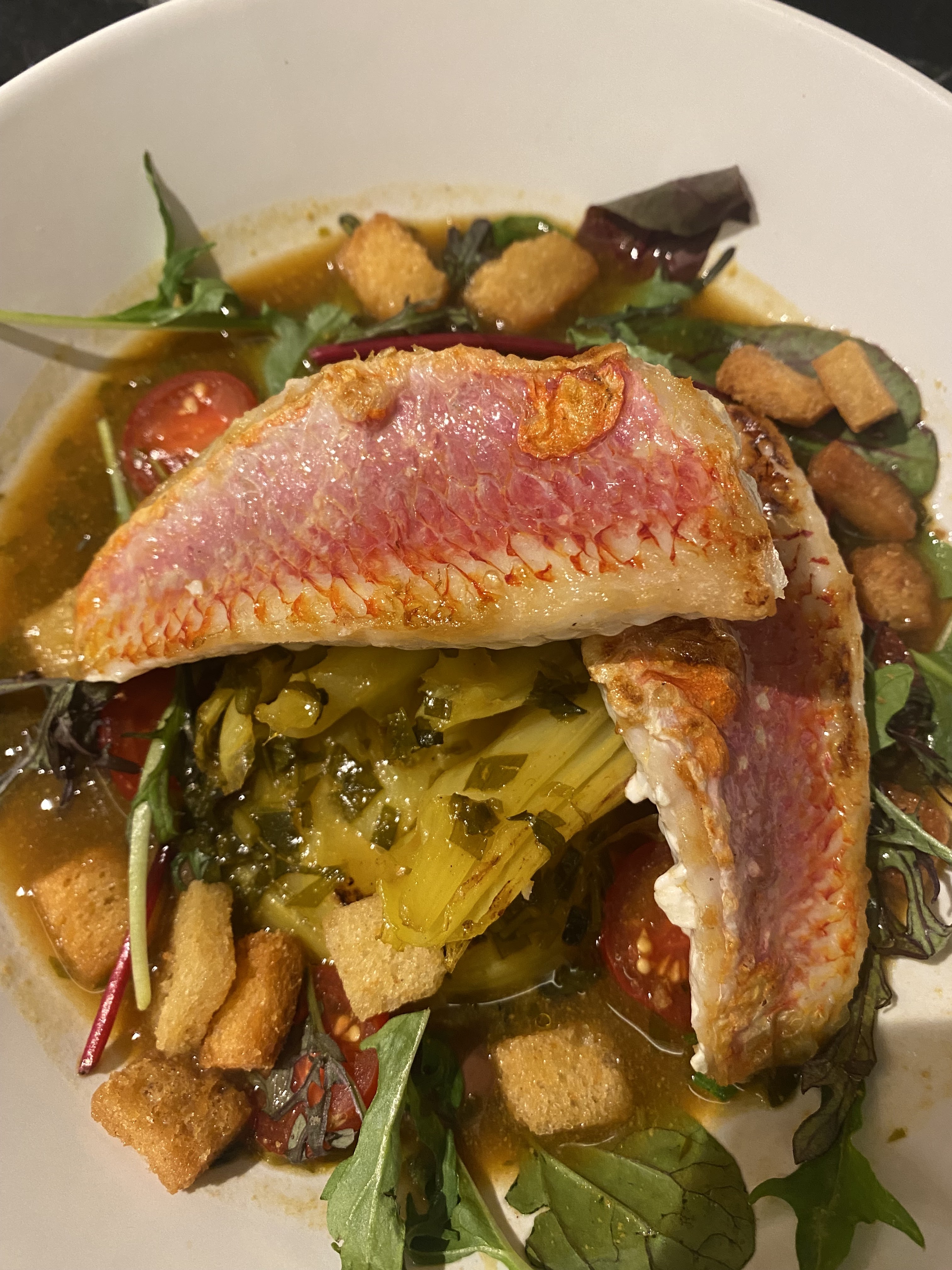 Nous avons passé une excellente soirée ici, la nourriture était fantastique. Le personnel était très occupé mais a réussi à faire en sorte que tout fonctionne parfaitement. Les cocktails étaient bons mais le vin était meilleur. Essayez le rouget ! Bon prix pour tout