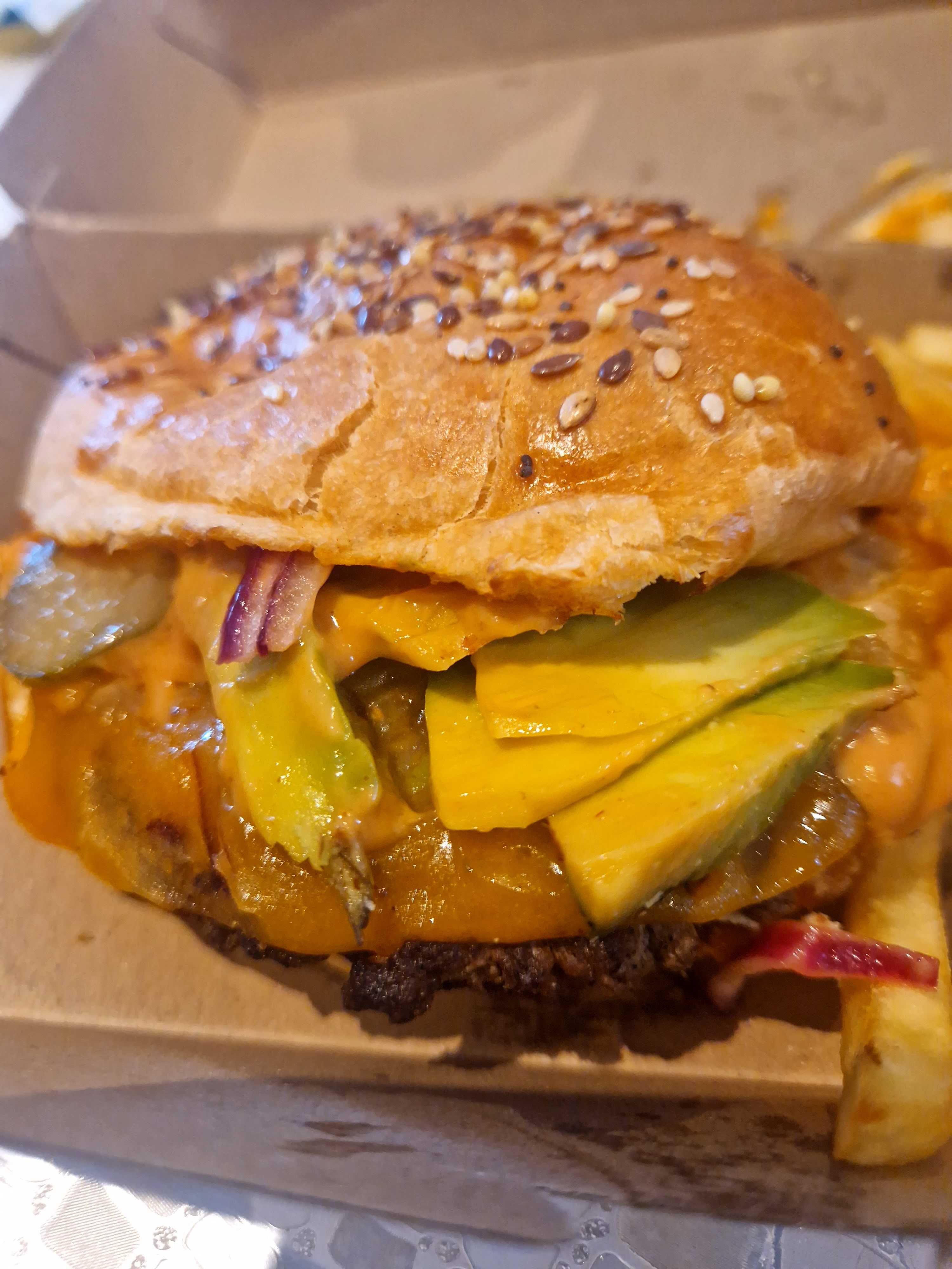Je suis super déçue ce soir, j'ai commandé un burger à l'avocat (le Saul Burger) et l'avocat n'était absolument pas mûre mais croquant et pas savoureux. J'ai déjà mangé ce burger et je n'ai jamais rencontré ce soucis, mais aujourd'hui j'ai dû retirer l'avocat (l'ingrédient phare du burger) pour pouvoir le manger. Je laisse 2 étoiles car le reste du burger était excellent, le cheddar et la viande étaient de très bonne qualité. Je retenterais ce sandwich dans quelques temps et j'espère pouvoir changer cet avis en un plus positif. À bientôt 🫶