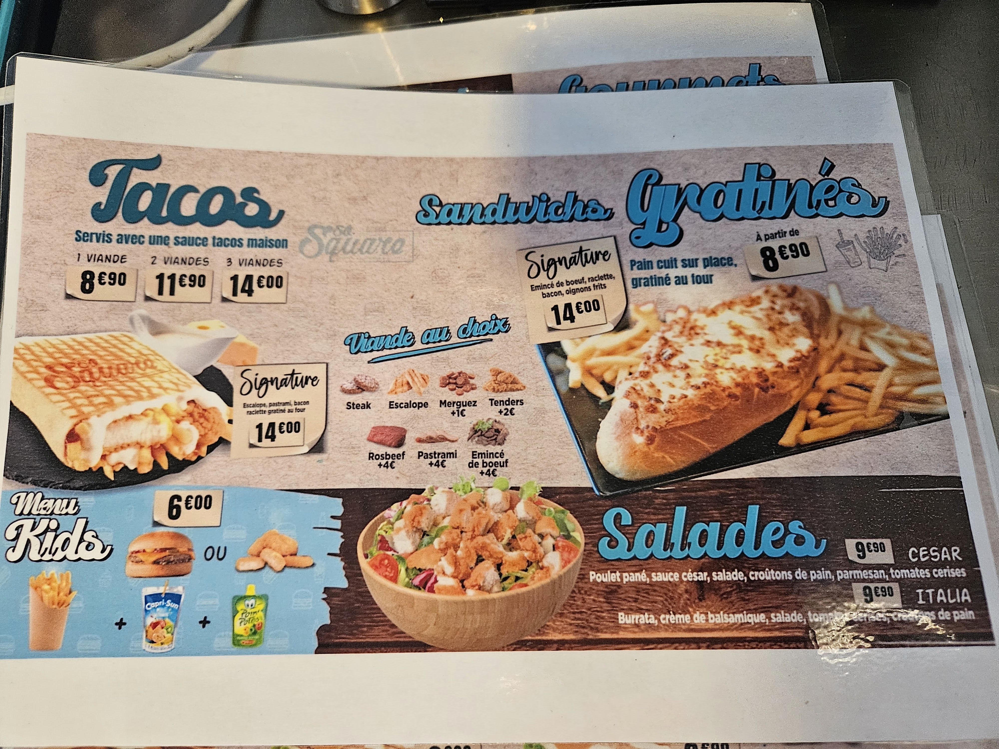 Ca me fend le cœur d'écrire ce message mais depuis le changement de propriétaire ce restaurant n'a plus rien à voir avec la qualité de prestations qui lui valait sa renommée. Très petit Poulet congelé , pain basique supermarché , sauce et fromage n'en parlons même pas ! C'est dommage so Square c'était mon restaurant de cœur et c'est inquiétant de voir comment l'inflation détermine la qualité de ce qu'on a dans l'assiette ! Pourtant ils avaient bien résister un certain temps :(