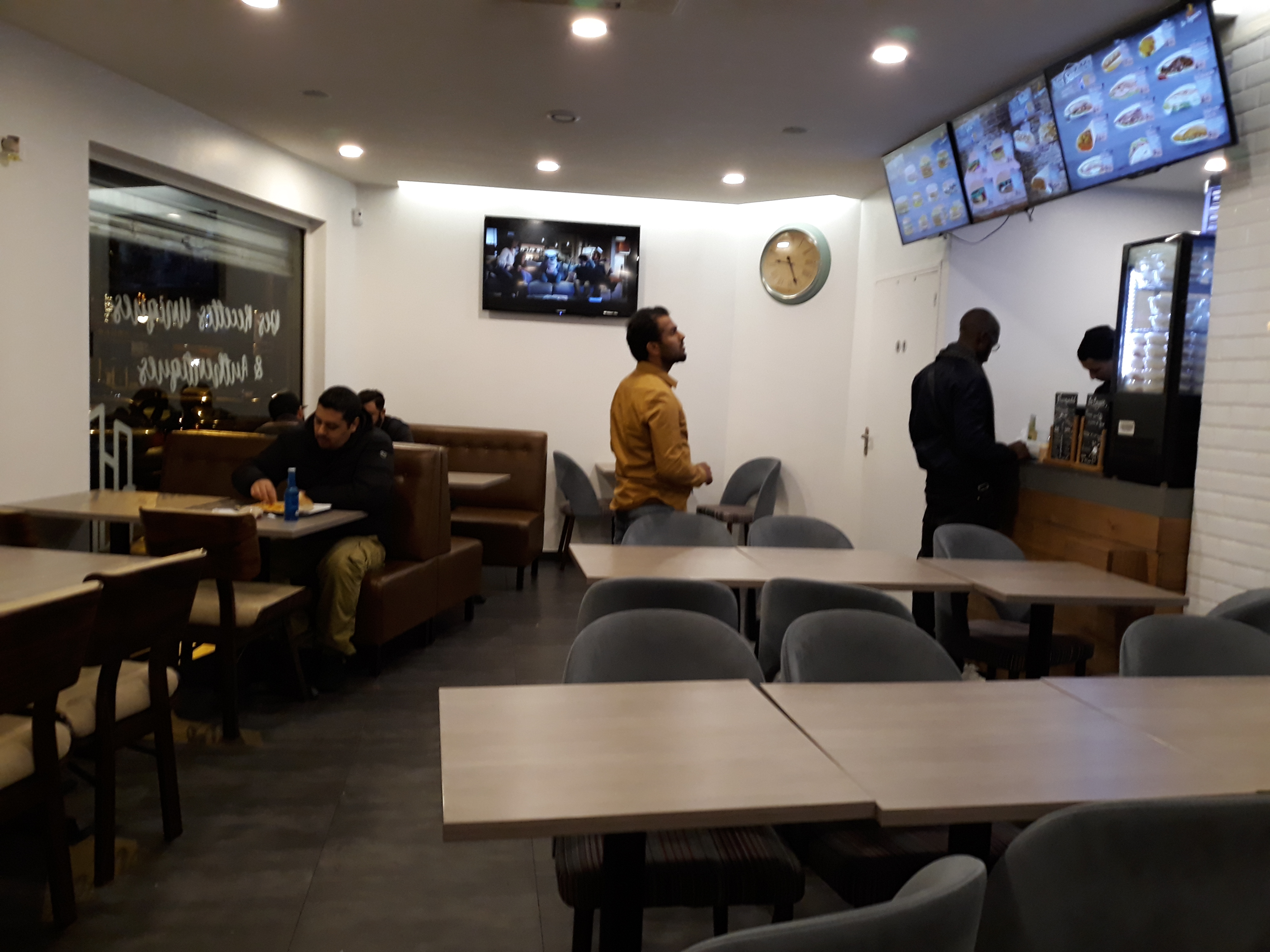 Pas très foot pour ma part en mode h24, 1h passée la bas en attendant une voiture au gare d'à côté (mr et moi aurions aimé avoir le choix) surtout que nous étions 3 filles à différentes tables. Sinon tout y est bon, frite nickel, sauce tacos maison hummm, la viande est bien servi et le sandwich le suit. Aucune erreur lors des commandes et personnel aimable avec nous et avec les autres clients présents ce jour. Je recommande et J'y repasserai avec du monde c'est sûr. Manger les restes le soir c était toujours aussi bon.