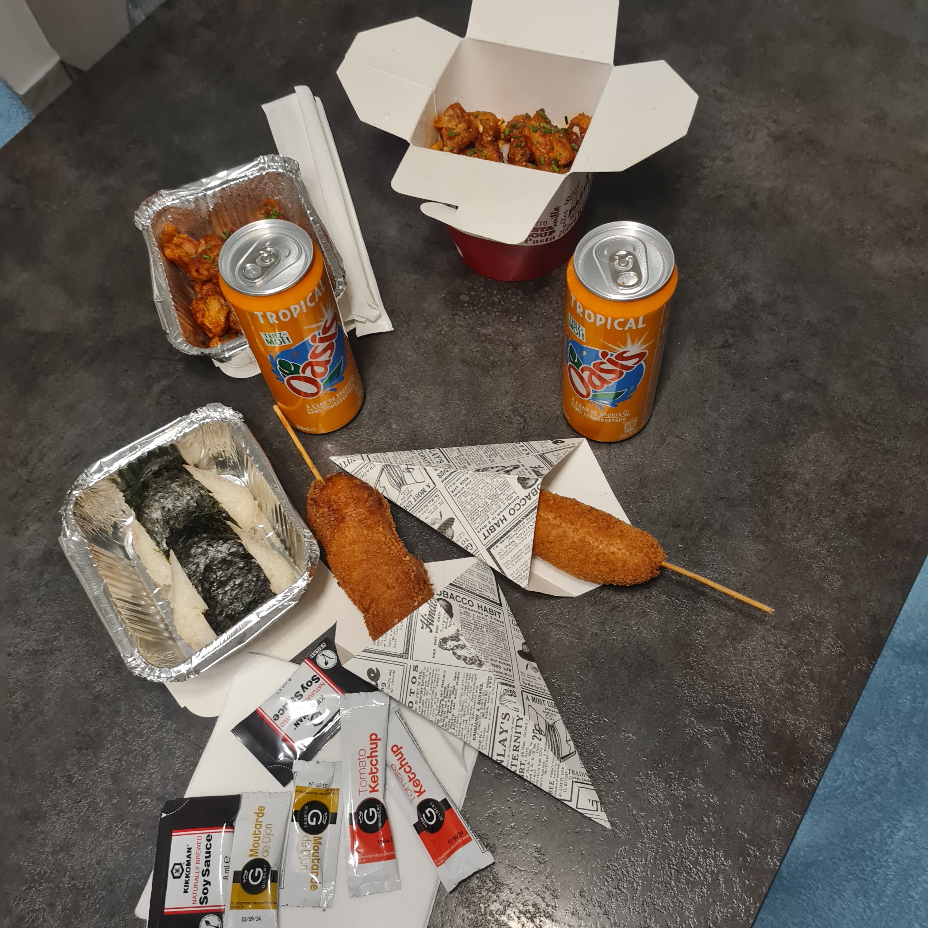 Tout est excellent, mais je dois donner une mention spéciale au poulet coréen ! Le poulet est tendre, juteux, bien cuit et épicé juste ce qu'il faut (j'ai bien fait d'écouter les recommandations du patron et de ne pas partir sur la version non épicé 😉) et bien sûr la portion est généreuse. Il vous fournis tout ce qu'il faut avec, baguettes, serviettes, sauces. Le patron est très agréable, à l'écoute et nous conseil à merveille. Et que dire de cette livraison rapide, c'est très appréciable pour la pause de midi 😍 Contenu de la commande : - Menu Team Japon - Corndog (en supplément) Le tout pour moins de 15€, quoi demander de mieux pour cette ville ou régnaient les kebabs et tacos ! PS: si cela peu aider des hésitants à passer leur commande, il prends la CB ☺️
