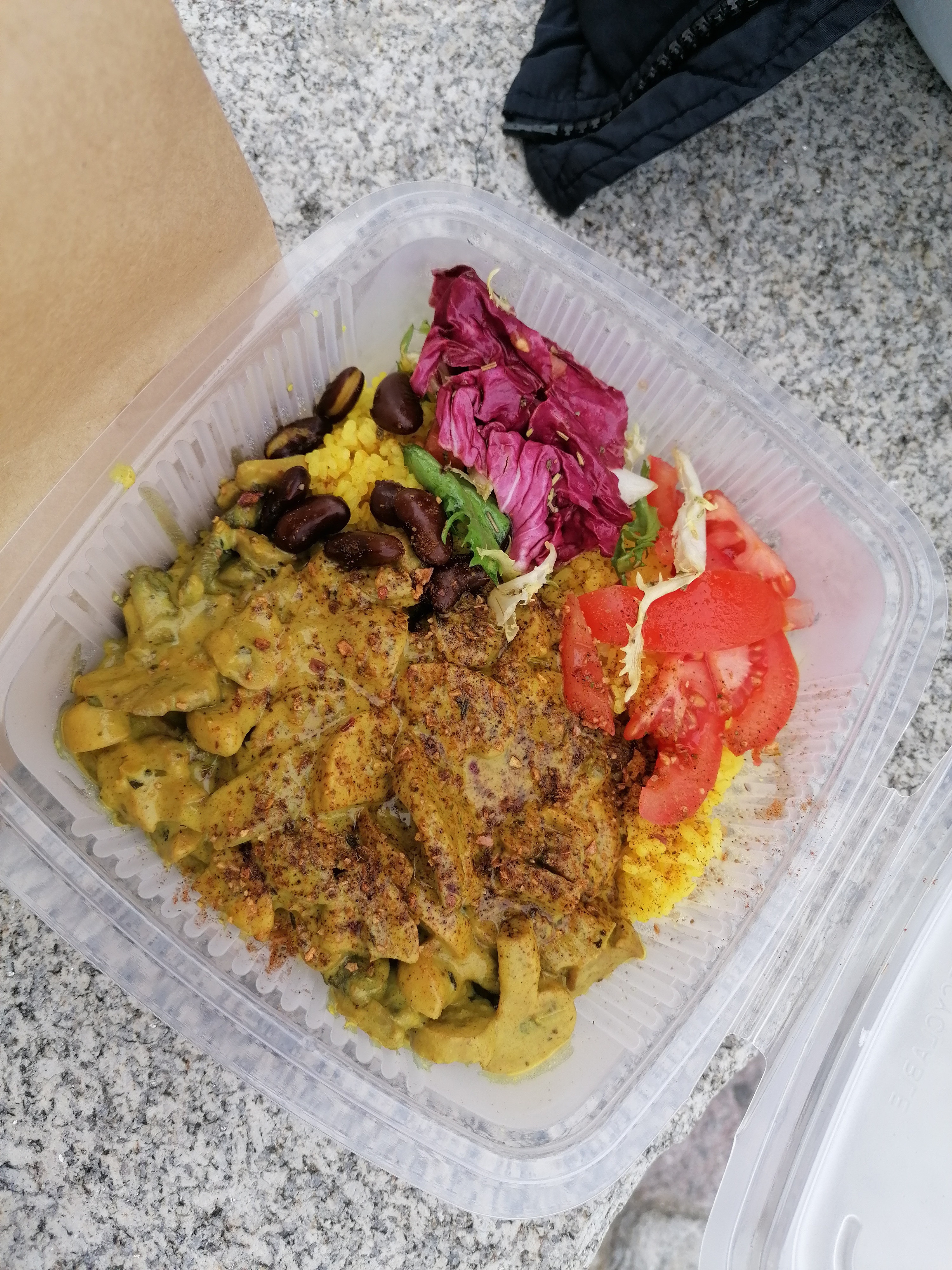Nous avons attendu très très longtemps avant d'être servi, morceaux de poulet moyen(peu de chose à manger) plat vegan très fade