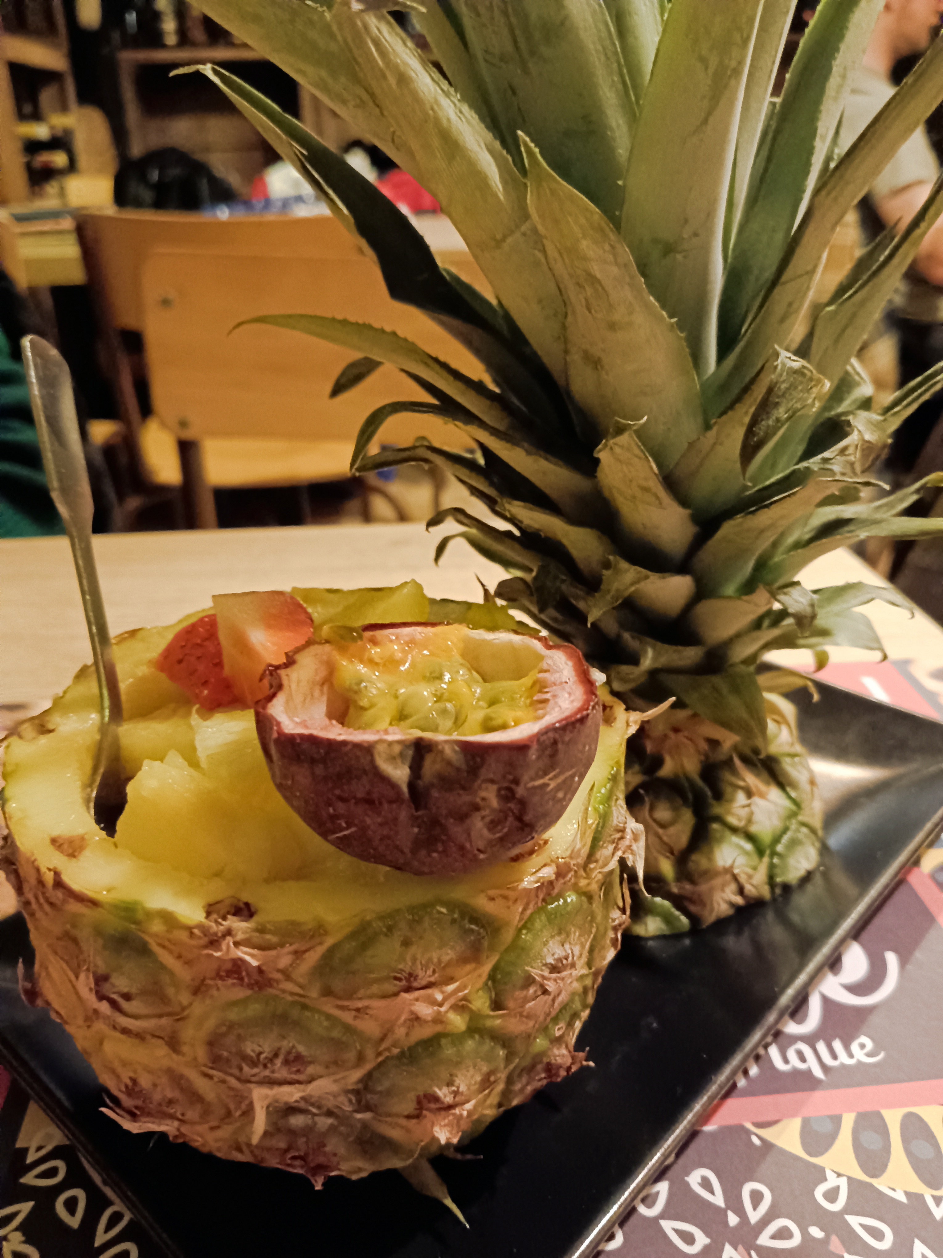 Souvenir délicieux ! Le patron est super sympa, les parts sont copieuses, les cocktails sont succulents, nous avons goûté une grande partie de la carte: tapas, entrée, plats, desserts: tout était tout simplement EXCELLENT ! Merci au patron et aux cuisinier-e-s grâce à qui nous avons passé un superbe anniversaire et vacances entre ami.e.s 💛 🍍Végé dispo 🍍