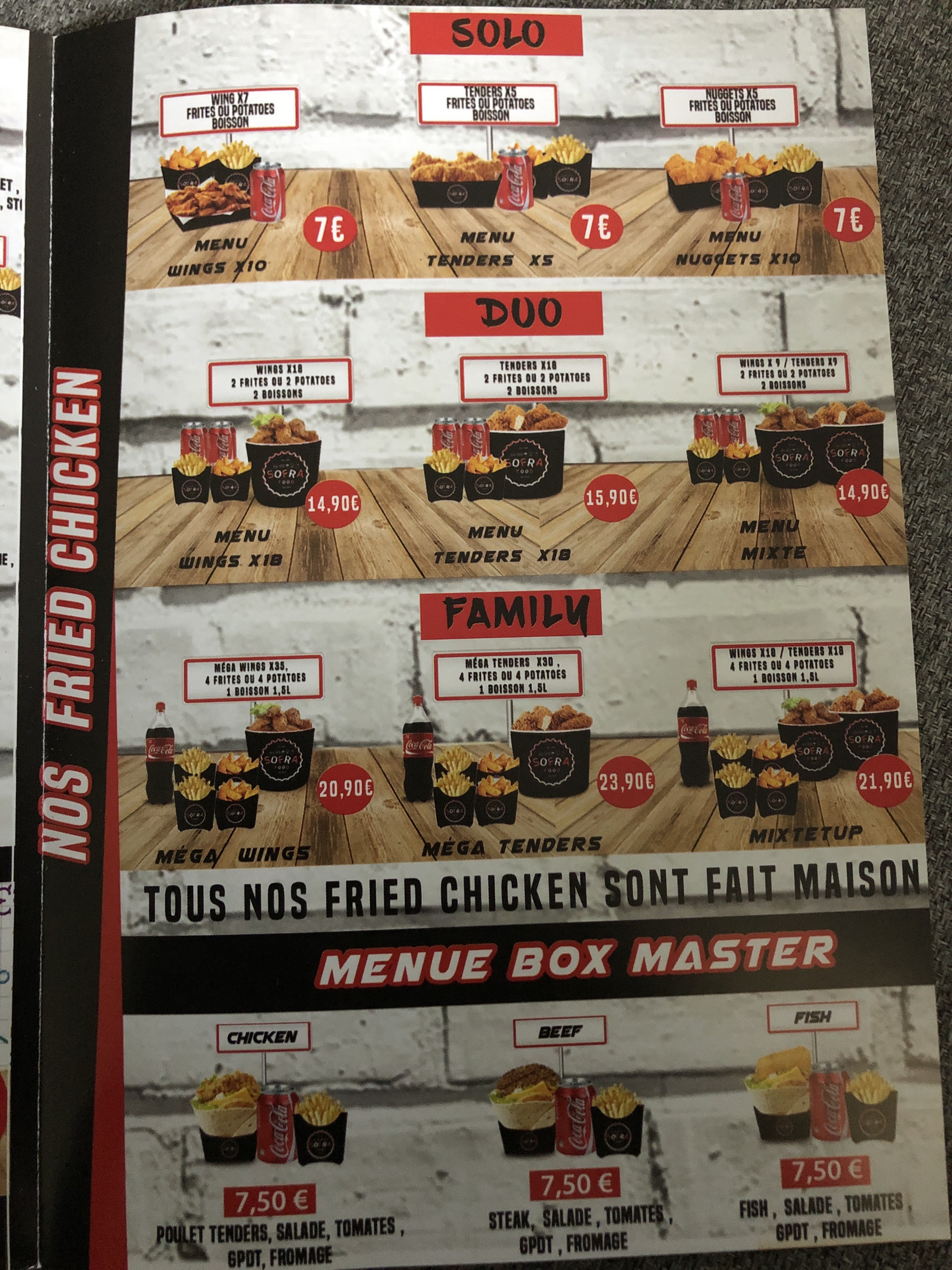 J’ai commandé sur « just eat » les prix sont abordables et après avoir pris un Menu « pack M » avec une petite boîte de tenders je comprend mieux.. si vous n’avez pas de palais ou choper le Covid qui vous a fais perdre le sens du « goût » je vous conseille ce restaurant pour les autres à éviter tenders acidulés sans chapelure horrible j’ai jeter la boîte … et la qualité des produit 🫣 vraiment autant cuisiner chez sois ou rajouter 3-5 eu et manger un sandwich de meilleur qualité .