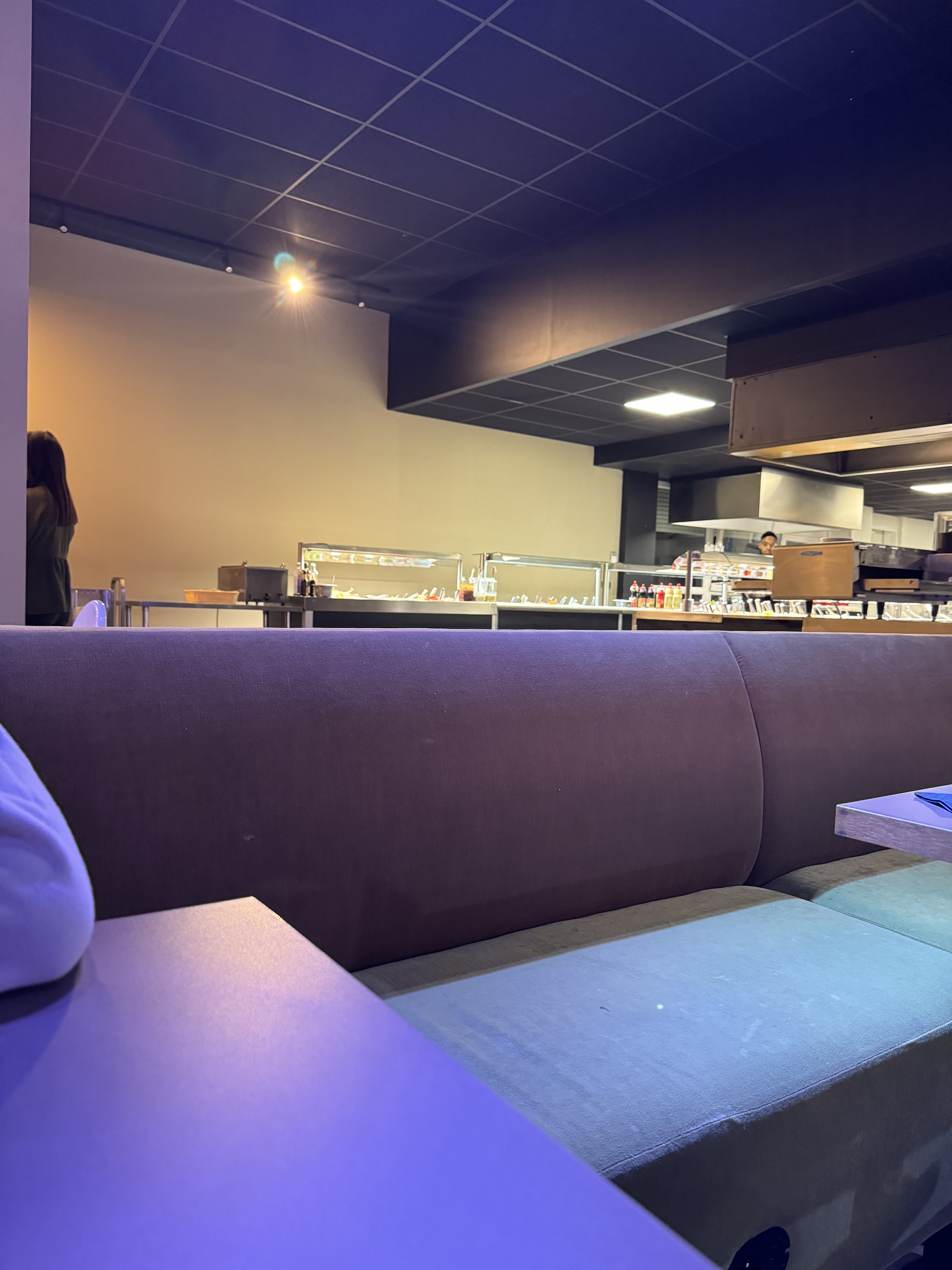 Dès l'entrée l'ambiance le style ça en jette! mais ont dechante rapidement en voyant le peu de choix au niveau des entrée (cafétéria), le plat c'est pas mal mais pas donné pour des pizzas ou gratins qu'on ferais chez soit! Et le dessert bah si vous aimez pas la glace bah vous avez que dalle, les tables sont trop proche l'une de l'autre aucune intimité, nous avons testé mais nous ne reviendrons certainement pas!