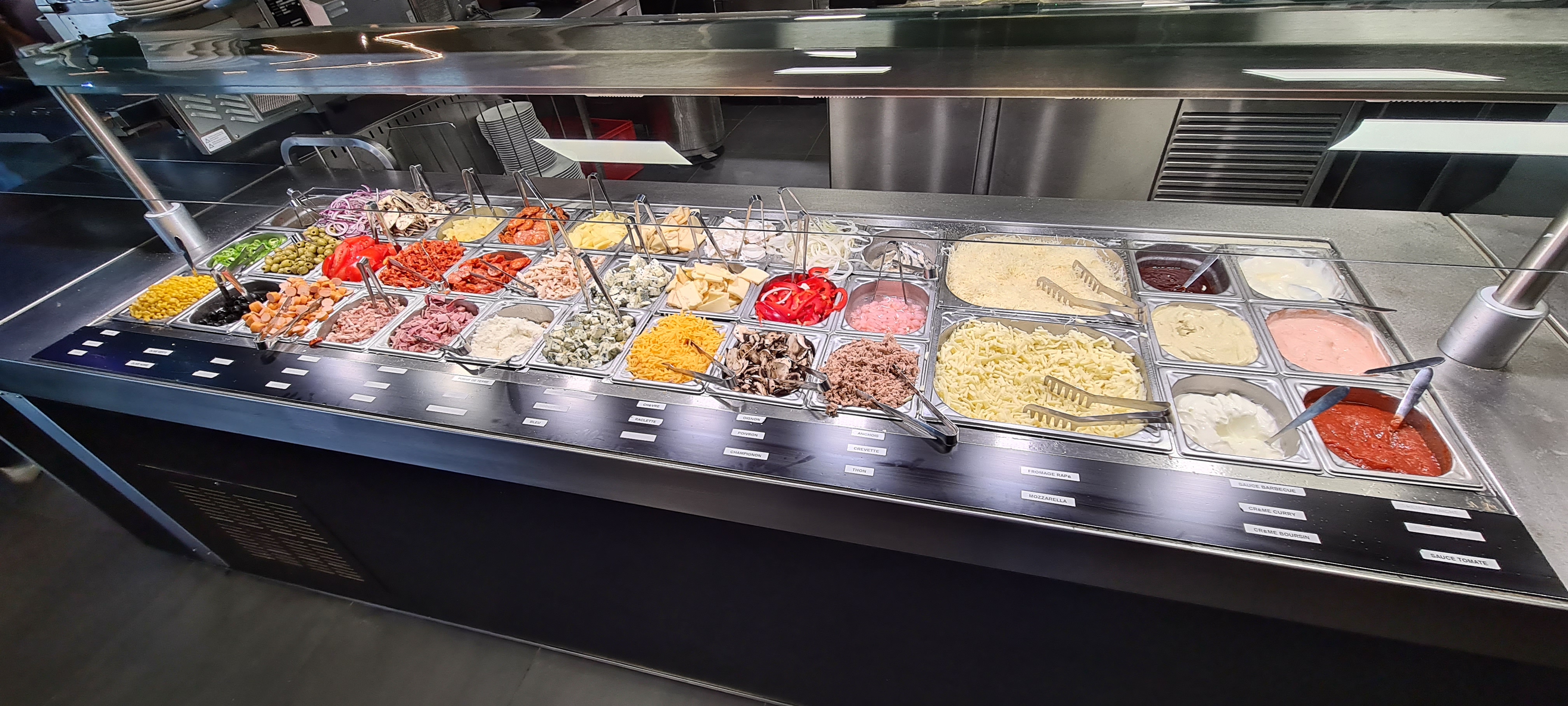 J'ai trouvé le personnel accueillant et très gentil. Les produits sont frais et ont l’air de bonnes qualités. Sinon le principe est sympa mais le prix est vraiment excessif pour des bacs d'aliments pour et sauces pour préparer son entrée, sa pizza ou son gratin de pâtes. Le buffet d’entrées n’est pas comparable avec les buffets d’entrées de pizza pay ou crocodile qui sont beaucoup plus fournis. Même topo pour le buffet des desserts. Les boissons ne sont pas inclus. Une centaine d’euros pour 4 personnes, ça ne les vaut vraiment pas. Il fallait essayer, nous l’avons fait et nous n’y retournerons pas.