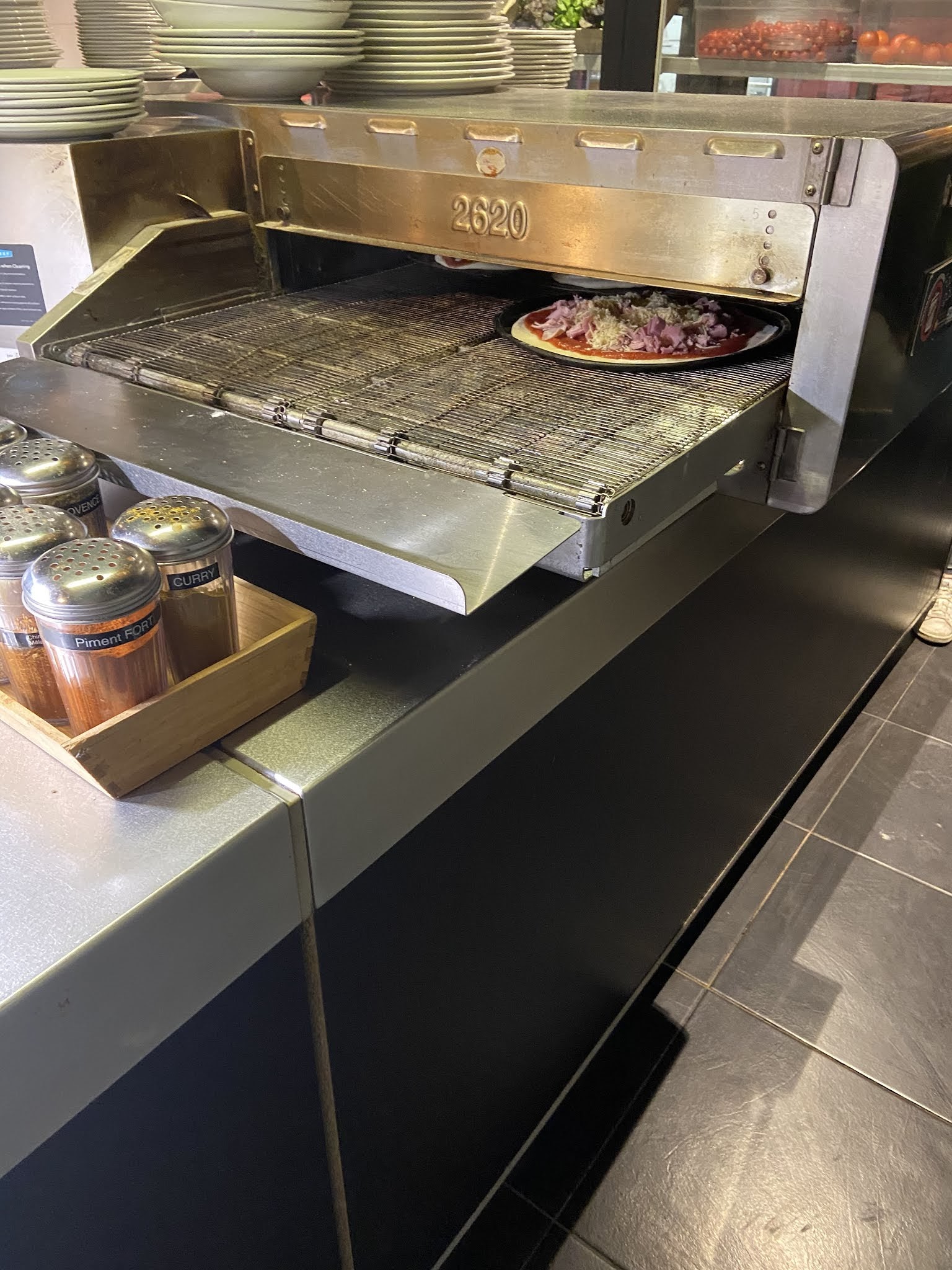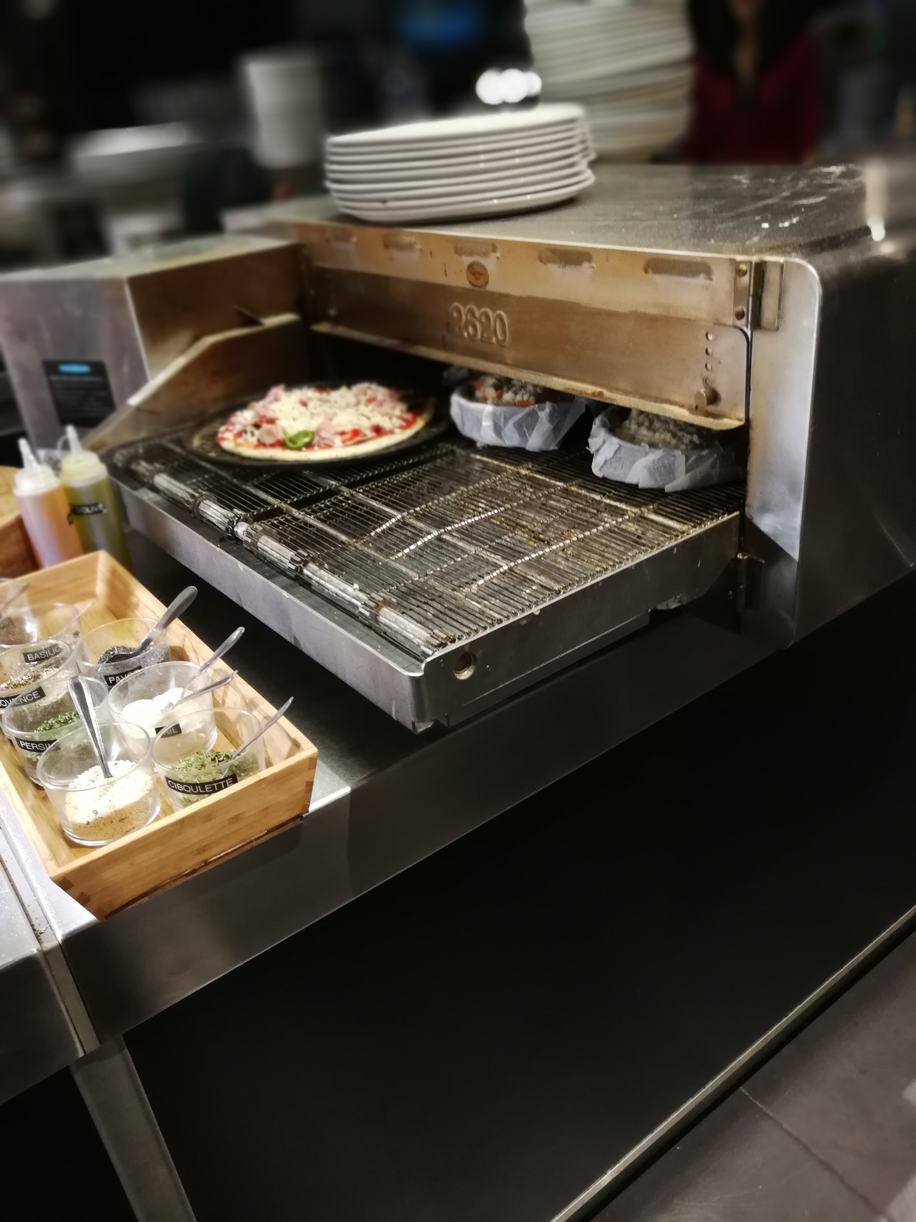 Le fait de pouvoir créer sa pizza et sa recette de pâtes est intéressant. On peut choisir entre différentes variétés de pâtes et 2 tailles de pâte à pizza, puis y ajouter les ingrédients désirés (plusieurs bases de sauce, de nombreux fromages, viandes et légumes). Ensuite, le plat est passé dans un four et il suffit d'attendre qu'il ressorte. Les produits ne respirent pas la grande cuisine mais c'est plutôt correct. Options vegan disponibles mais limitées (buffet de crudités, sauce tomate et légumes). Par contre gros bémol sur le système de file d'attente pour le four : il faudrait installer une vraie zone d'attente plutôt que de laisser tout le monde s'amasser autour du four, surtout dans les conditions actuelles... En résumé, c'est un endroit qui fait l'affaire quand on veut se remplir la panse pour pas trop cher (18,90€ le soir).