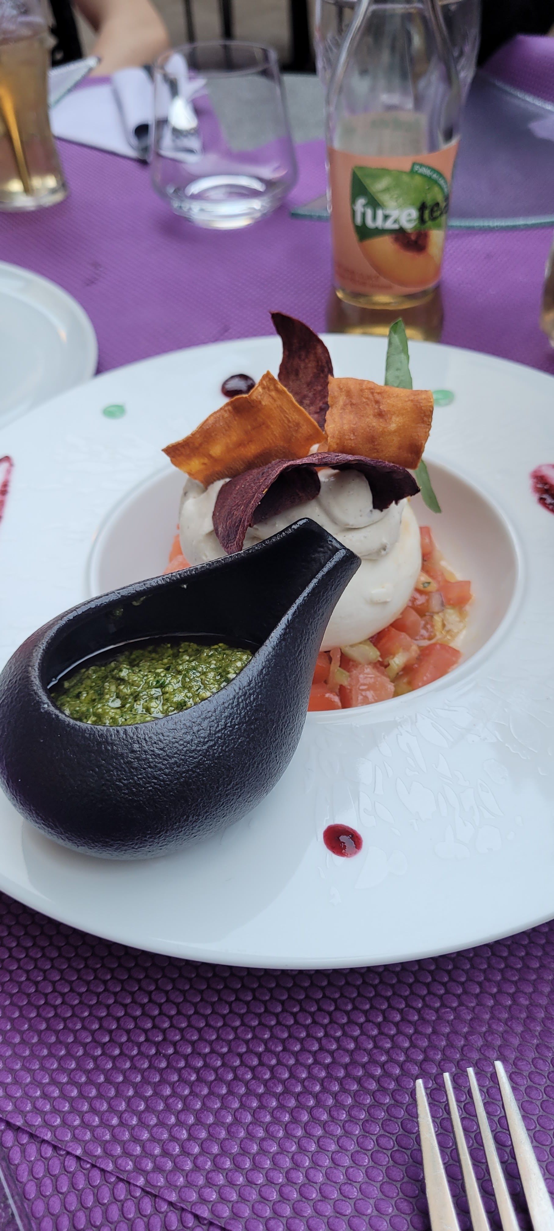 Dans se restaurant il y a que les yeux qui mangent.(très belle endroit,belle assiette,mais question de goût ses une toute autre histoire).《Pas bon》.une étoile pour le visuel.