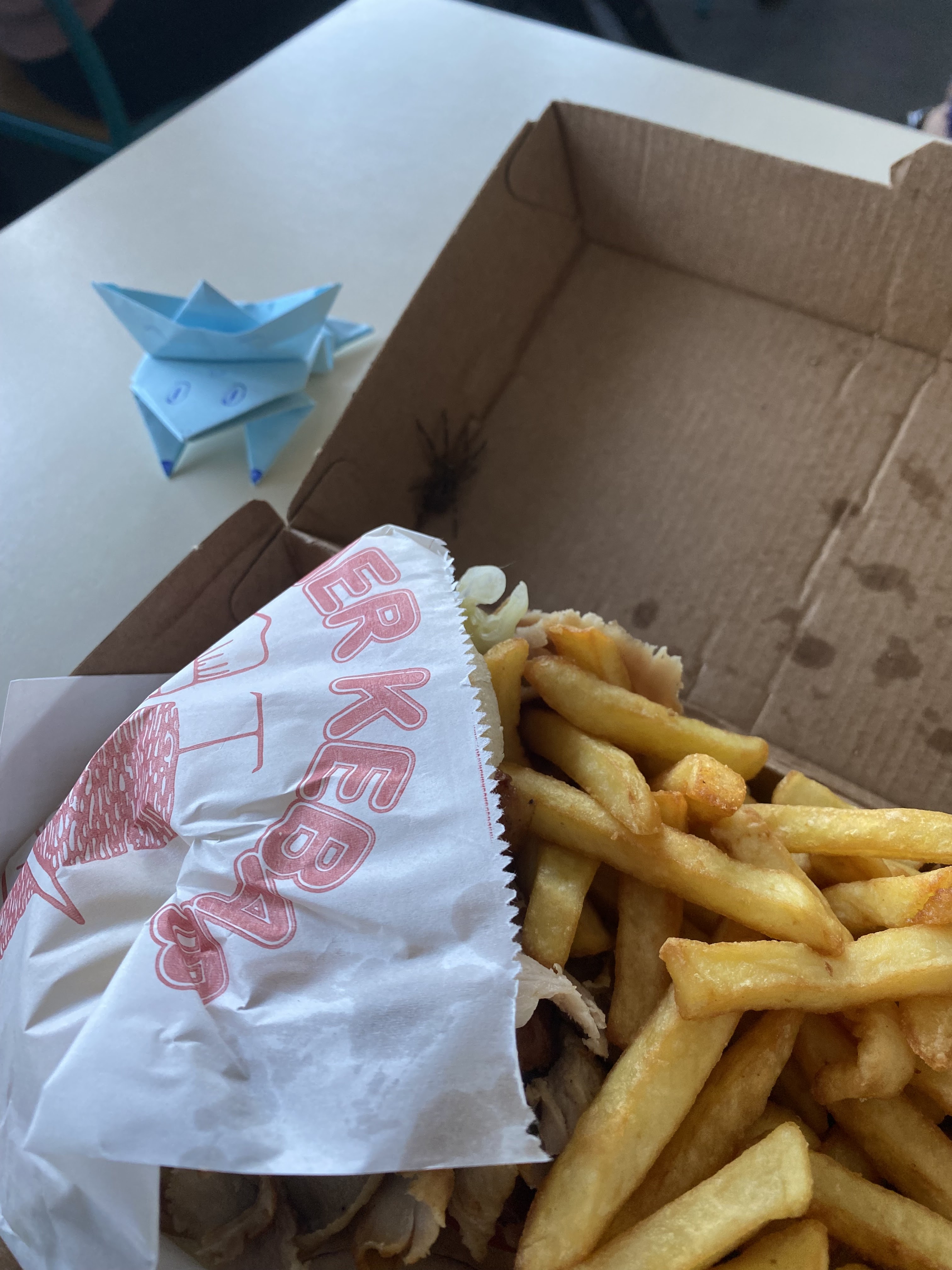 Kebab vraiment pas très bon : viande fade. Aucun plaisir à manger :-( Les frites sont moyennes et surtout pas salées… En dessert Tiramisu (décongelé en gobelet), pas terrible, trop sucré, pas de goût de tiramisu. Point + : malgré la queue, servi en un temps record ! Bref pas prêt d’y revenir mais je suis étonné du nombre d’avis positifs.