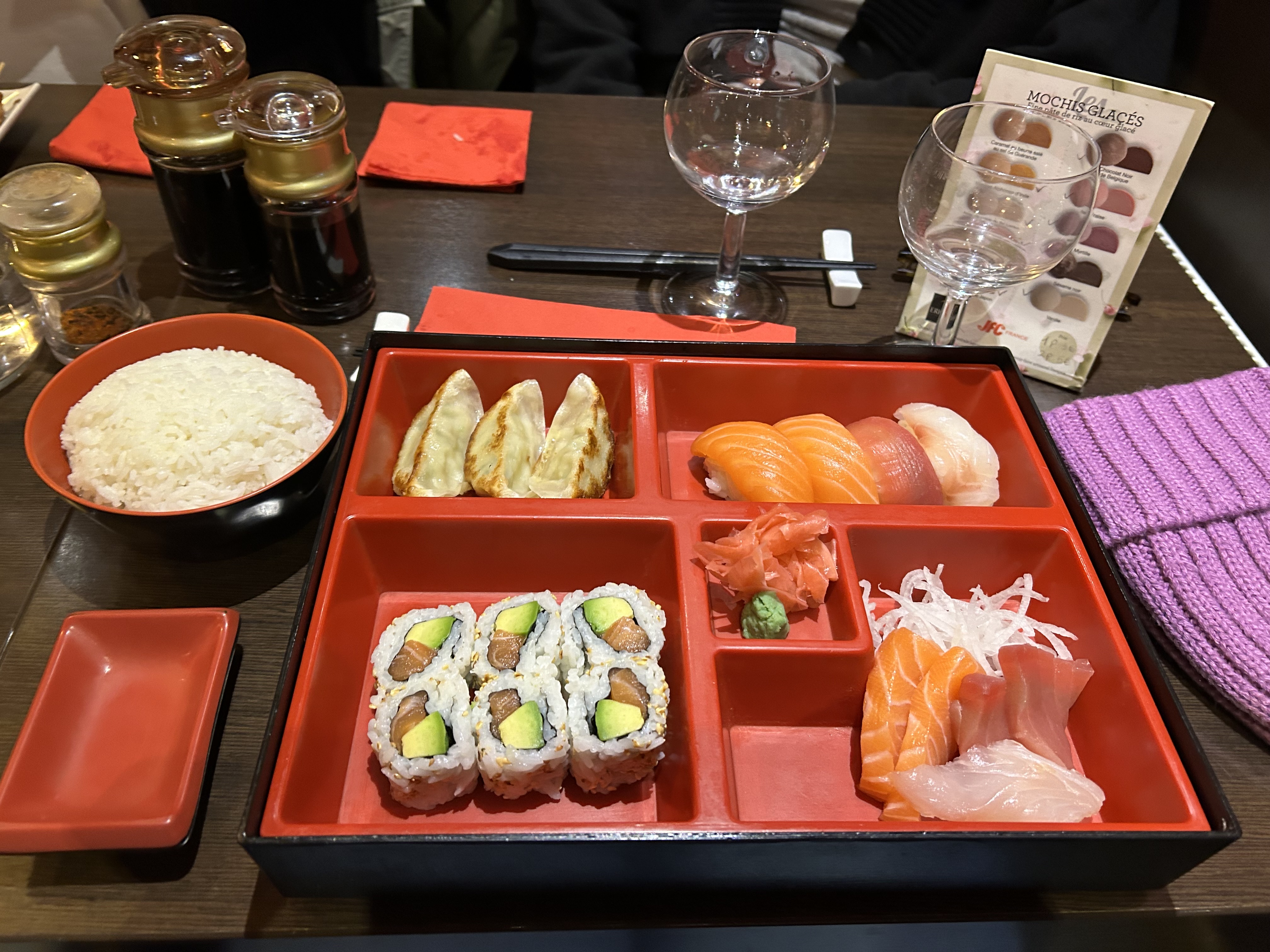 Bon mais les sushis et la salade étaient tièdes, dommage...