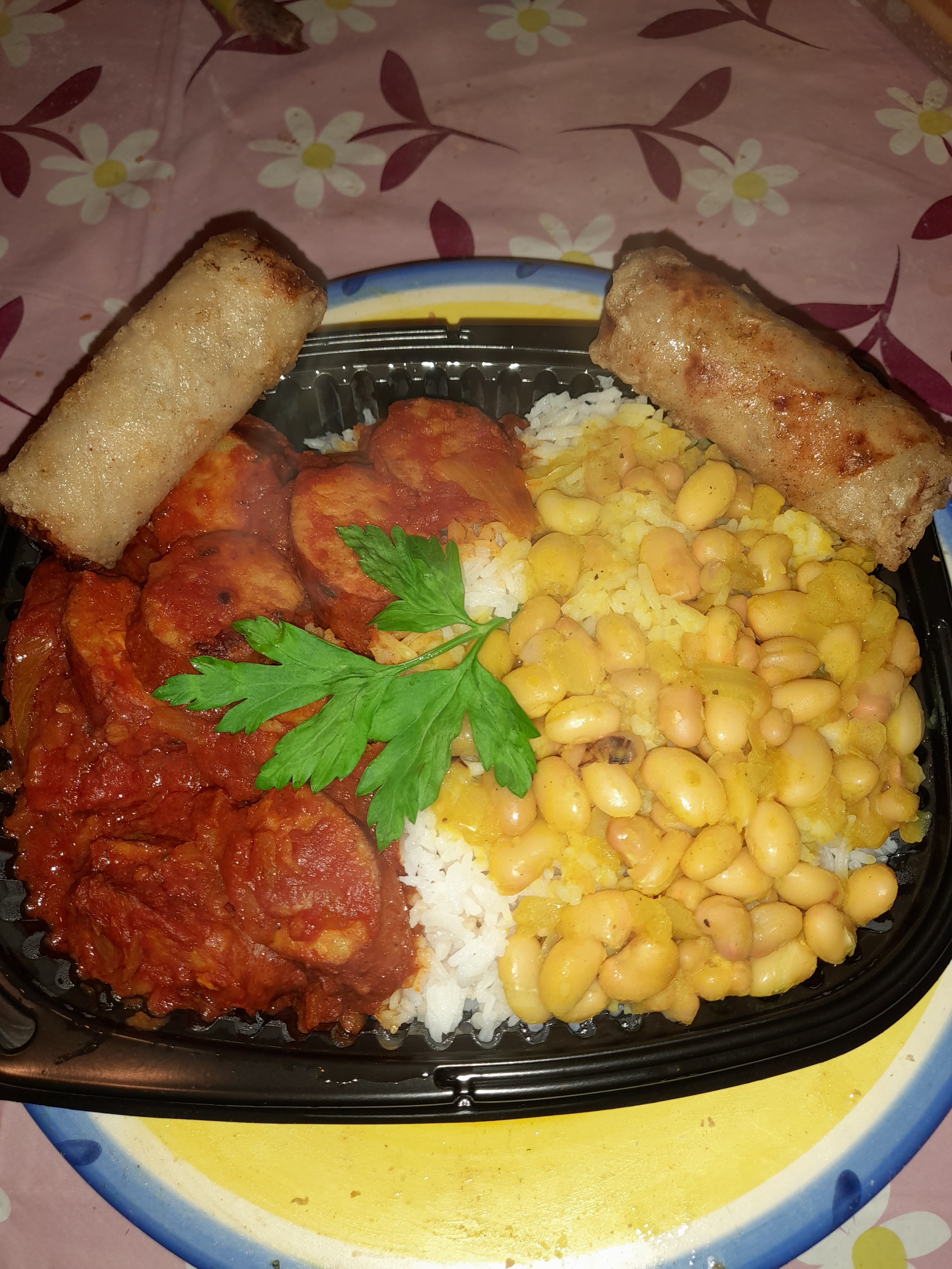 Des plats délicieux, Sylvie nous amène la Réunion dans l'assiette. Des nems, des samoussas, du riz cantonnais, du poulet curry et bien sûr l'incontournable rougail saucisse 😋👌