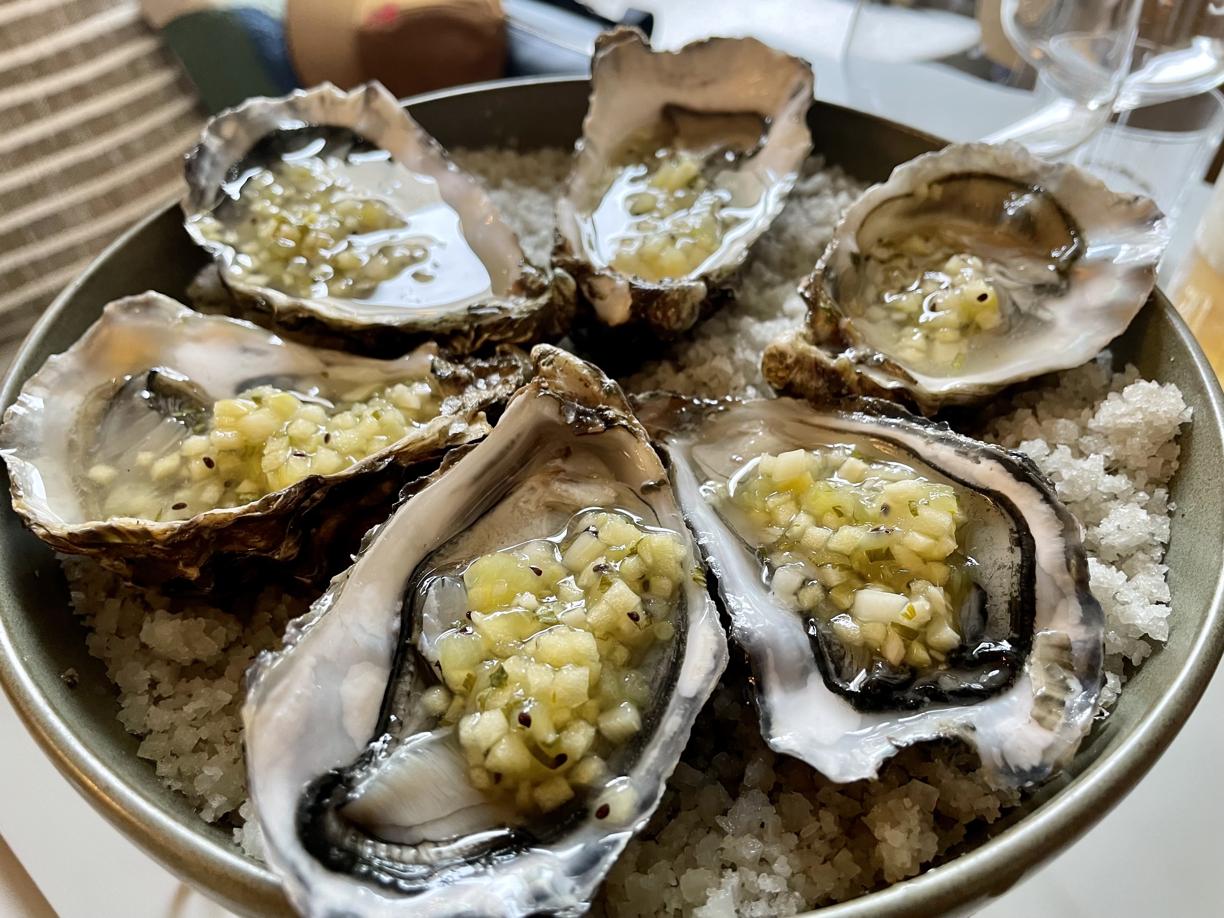 Je suis arrivé par hasard. Cuisine délicieuse, gourmande au sens plein du terme. Huîtres au kiwi, poulpe au fromage. Vin blanc léger 😊