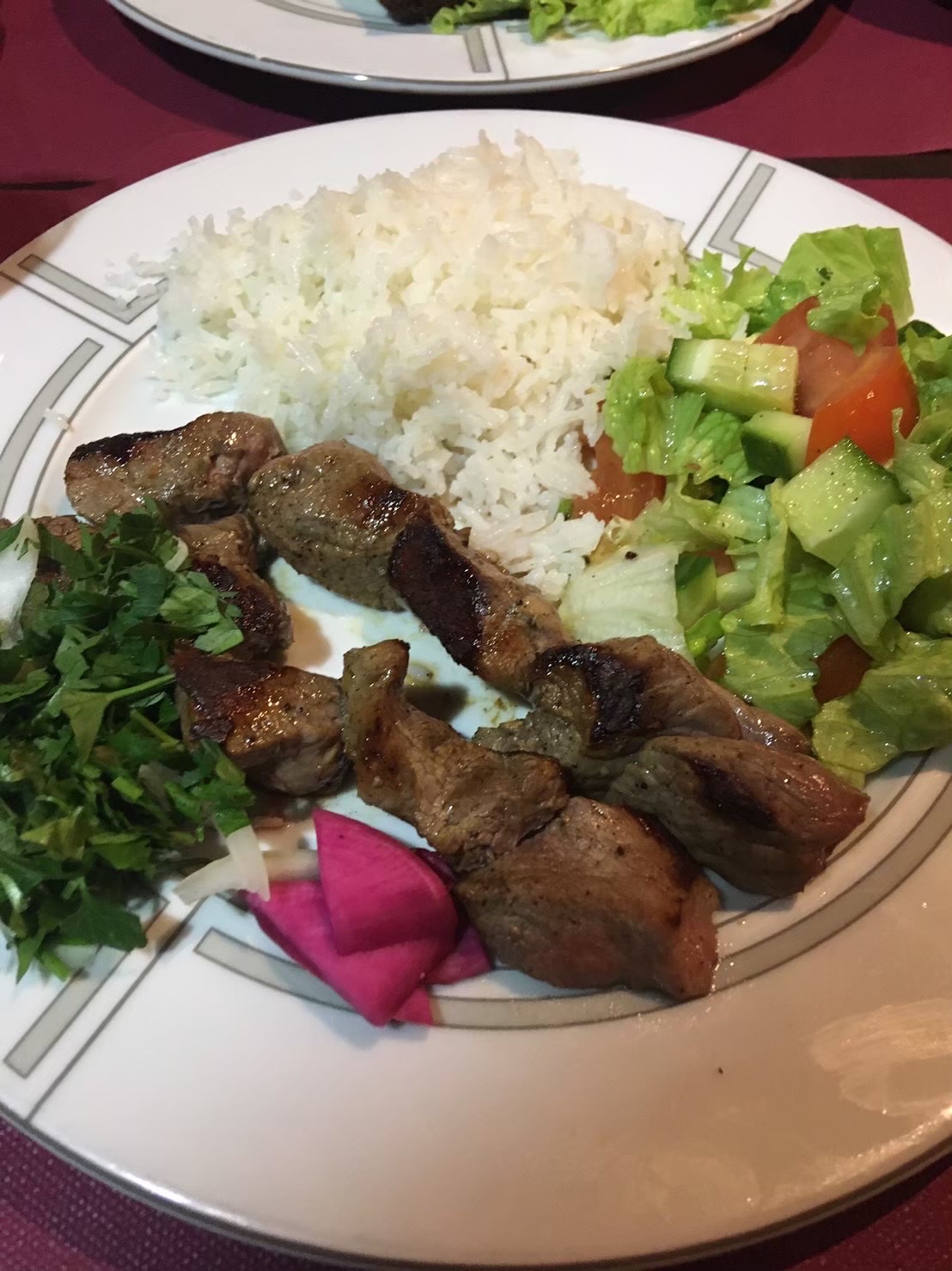 Nous avons fait un excellent repas, merci. Nous avons testé plein de plat, mais j'ai deux favoris : le moutabal (un des meilleurs que j'ai mangé), et le chich taouk (poulet mariné au thym). Un vrai régal !