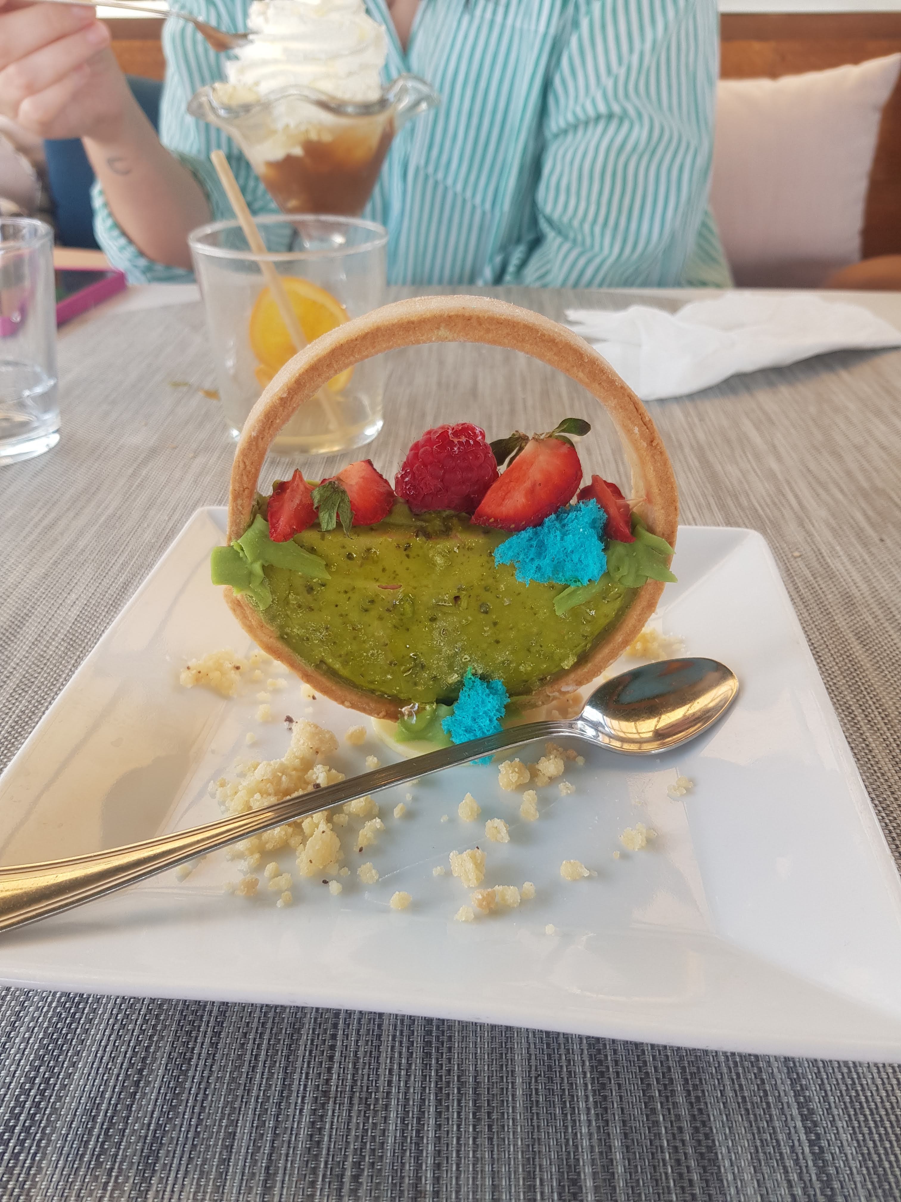 Avec un soleil radieux...lieu attirant joli mais une fois assis c'est la déception !!! Pas de carte proposée et un service qui ne comprend pas une simple demande. On bout du compte deux minables glaces et encore il a fallu réclamer la chantilly pour un prix de 15 euros les 2 glaces... C'est vraiment dommage