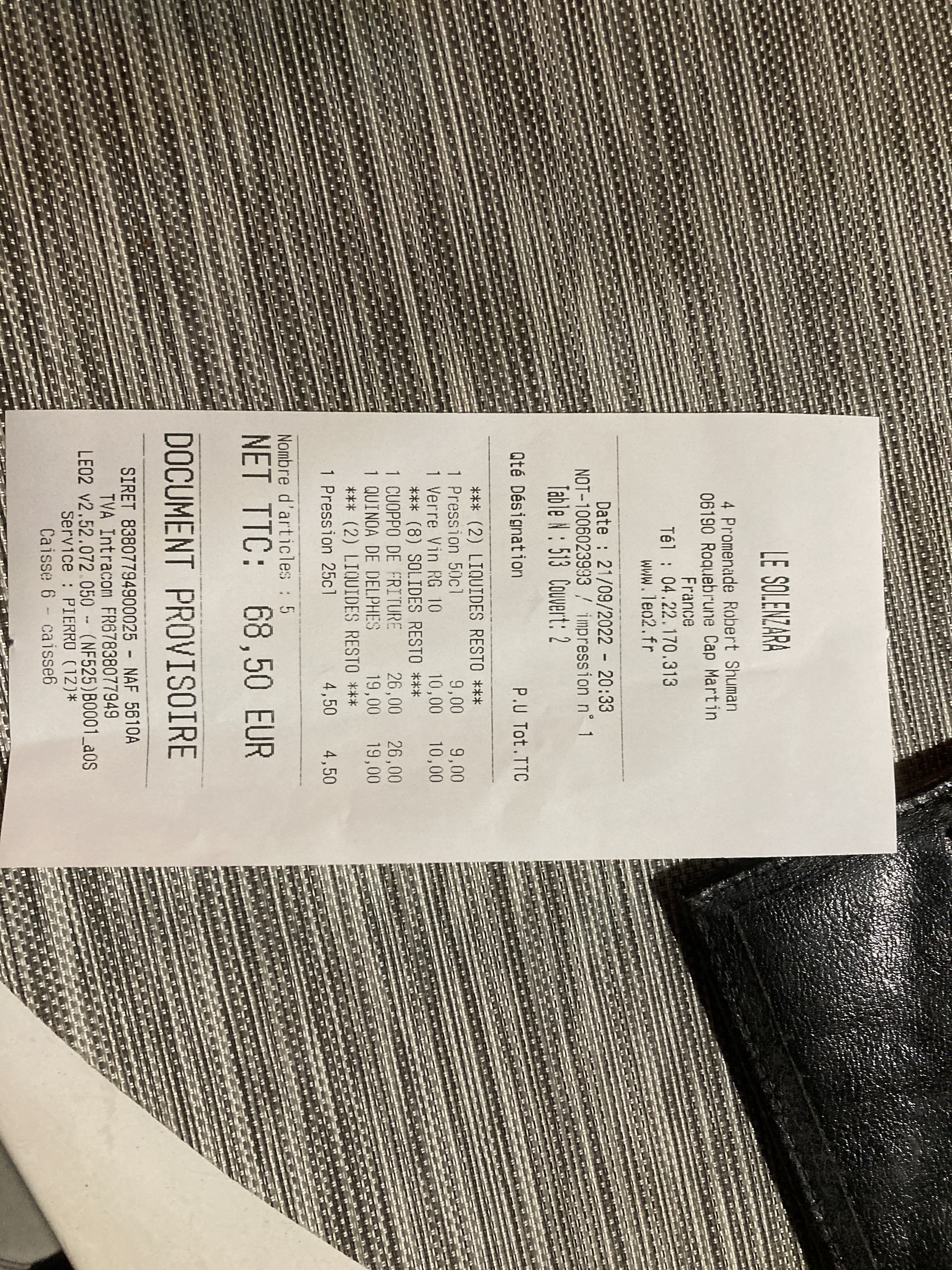 La daurade facturée à 60€ par personne… alors que sur la pêche du jour c’était à 22€. Faire vraiment attention car il y’a de l’abus