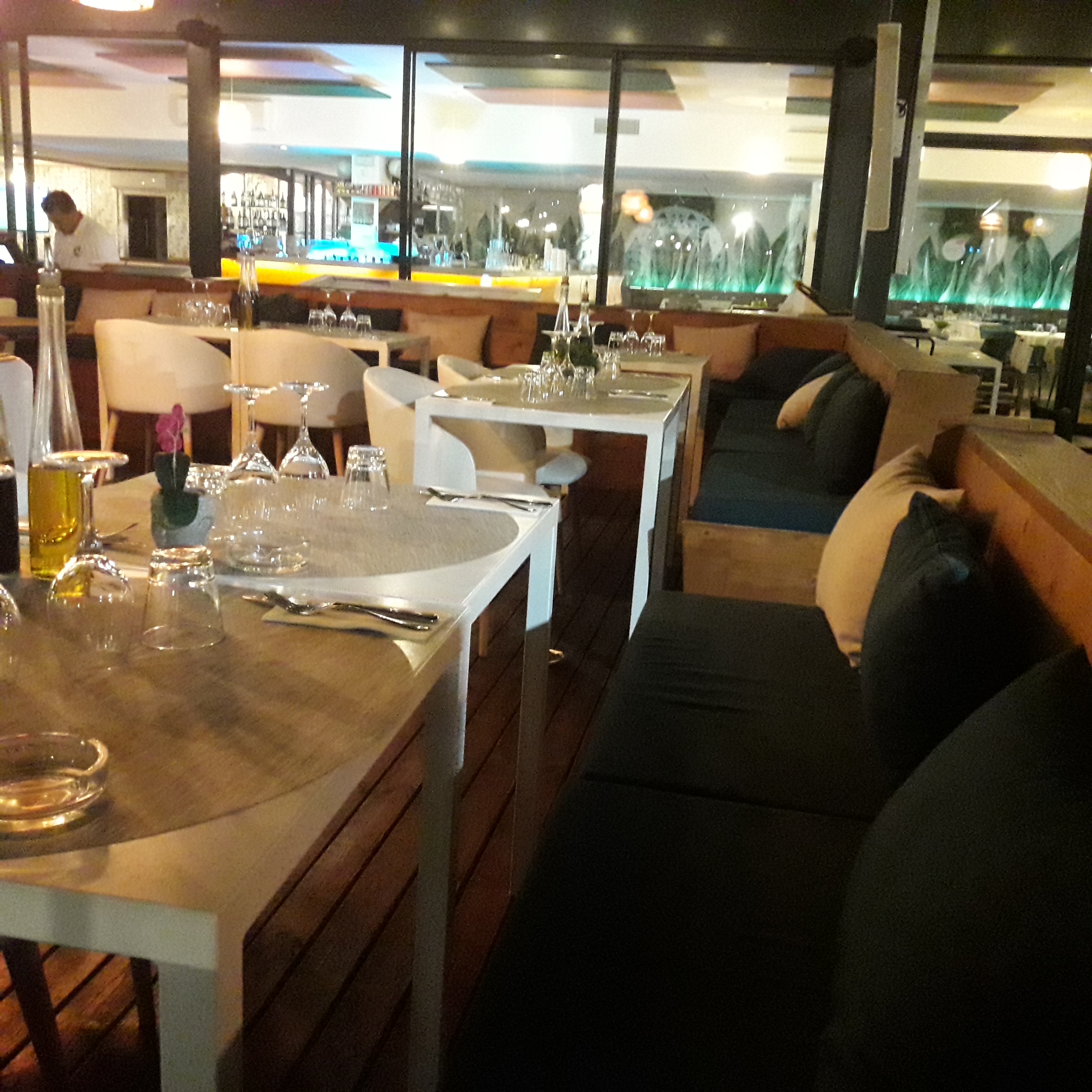 Ensemble moderne, bien arrangée. Terrasse accueillante. Très proche du bord de mer, mais la partie resto ne permet pas de profiter de la vue. Nourriture qualité standard. Seuls les pris sont élevés ATTENTION : Les desserts ne sont pas toujours très frais. J'ai commandé un tiramisu hors d'âge... . Renvoi en cuisine sans aucun retour (sauf sur l'addition). J'ai profité toute la nuit du contenu de la cuillère pour le goûter.