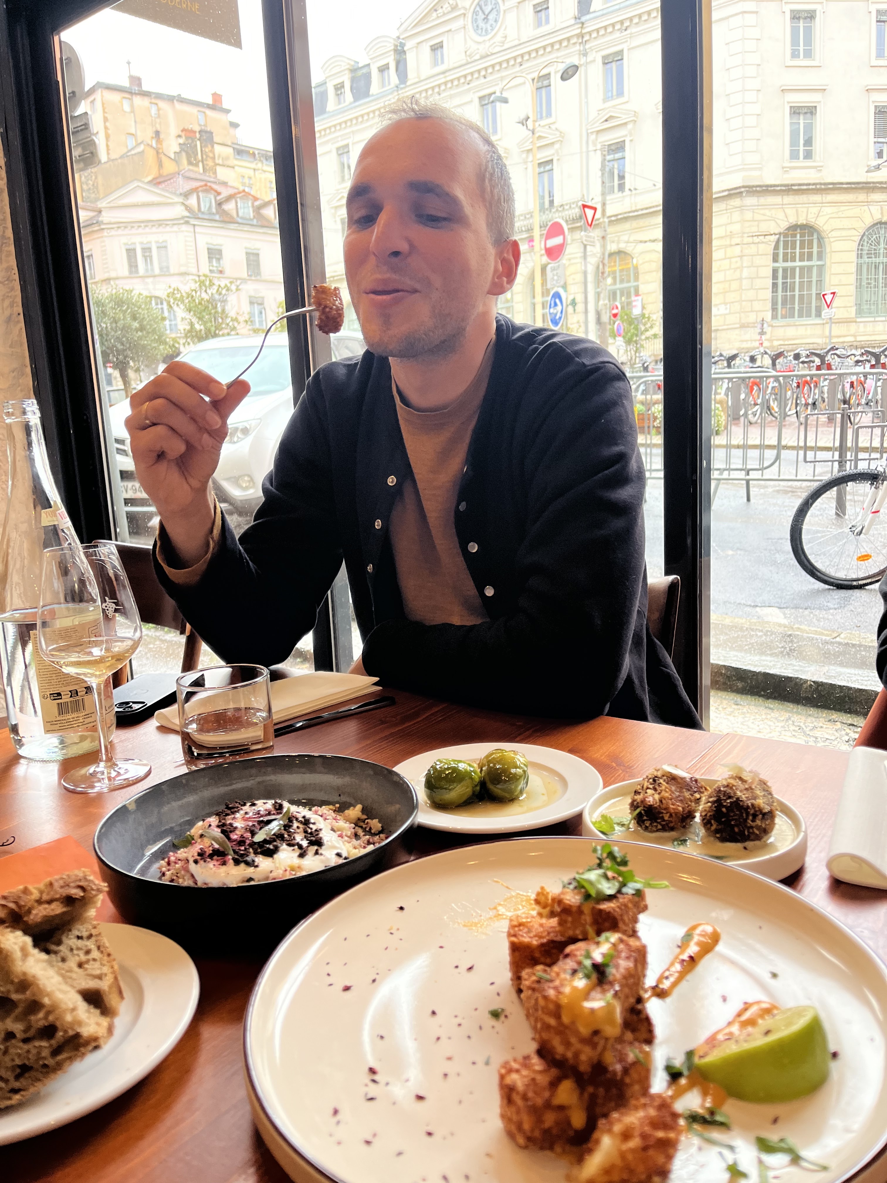 Ma fiancée et moi avons mangé ici hier soir et tout était impeccable ! Probablement le repas le plus intéressant et le plus excitant que nous ayons mangé à Lyon jusqu’à présent. La chef Sarah maîtrise parfaitement les textures complémentaires et contrastées, réunissant des ingrédients de nombreuses cuisines différentes (Algérie, Brésil, France…) tout en les harmonisant à merveille. L'option végétarienne était délicieuse et pas du tout secondaire, comme dans de nombreux autres bistros. Les dattes farcies ont été une révélation. Si vous êtes un fan d'Ottolenghi, vous allez *adorer* cet endroit. Merci Sarah + l'équipe - nous reviendrons certainement !