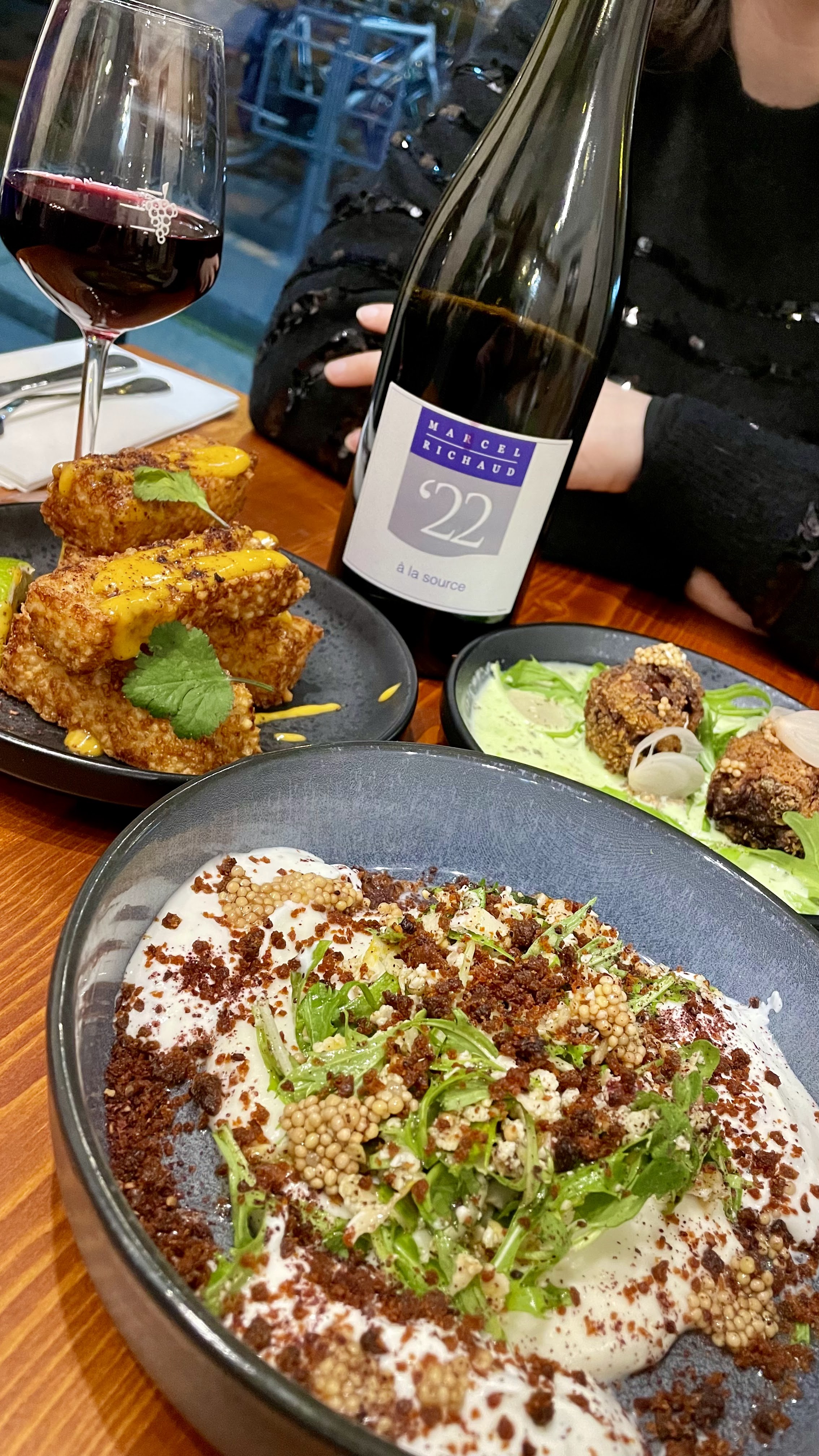 Belle et douce soirée passée chez Soma. La cuisine de la cheffe Sarah est à la fois sensible, gourmande et innovante et vous fait voyager un peu partout en Méditerranée, de la Grèce à l’Algérie (énorme + pour la tempura de datte/pesto ail des ours et le quasi de veau au café). Nous avons dîner au bar en présence de la cheffe qui nous a accueilli comme à la maison, avec le sourire, et qui malgré le rush du service a pris le temps de discuter avec nous, de nous raconter son histoire et ses influences… Il faut y aller les yeux fermés et se laisser porter par ce si beau voyage 🌻 Merci à toute l’équipe Soma !