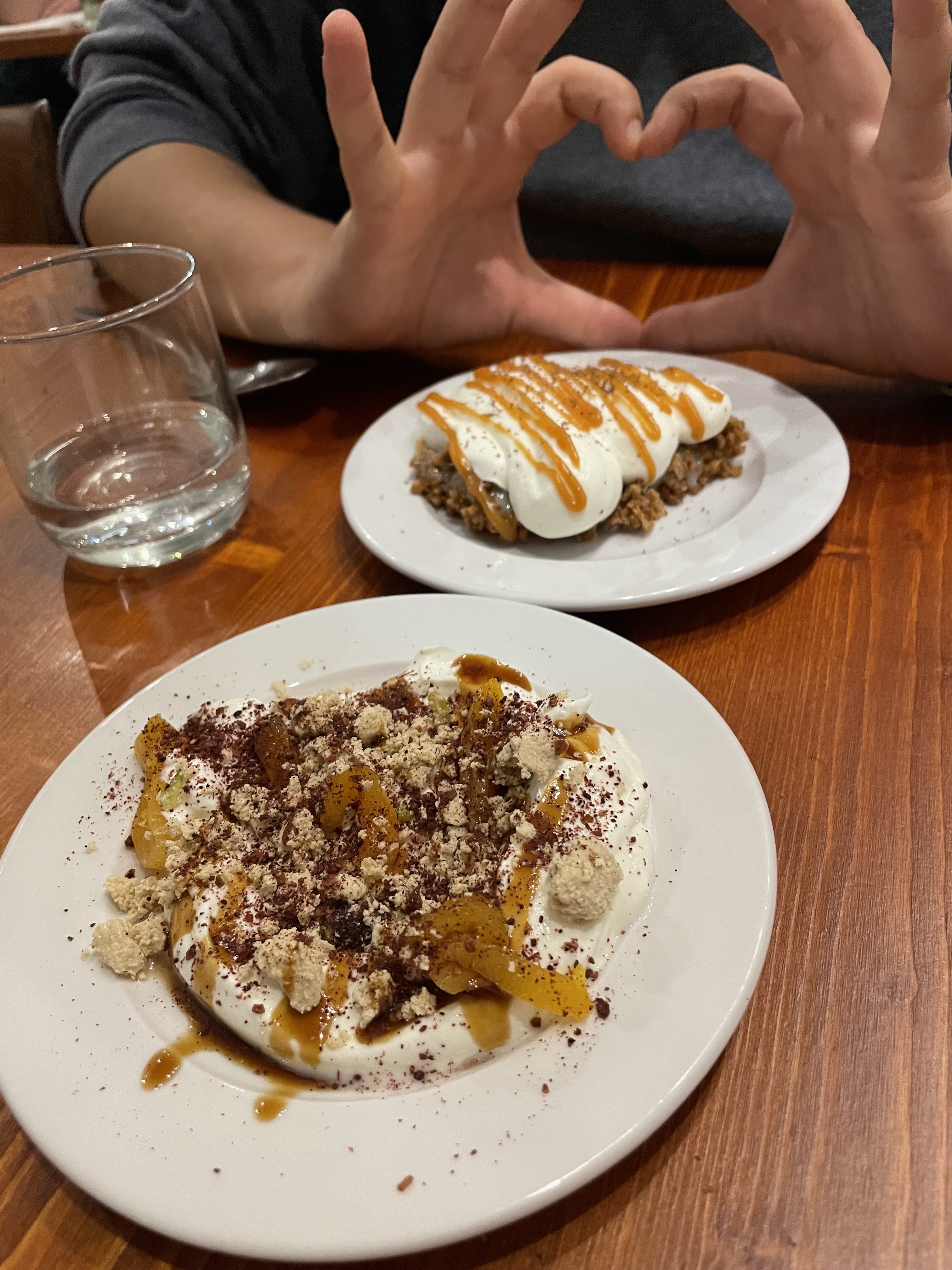 TELLEMENT BON !!! Je ne connaissais pas la cuisine de Sarah jusqu’à hier, mais quelle réussite, tout est délicieux, le travail, la réflexion, le lieu, les tapioca cheese, les dattes au fromage (étonnamment très très très bon, mon entrée préférée), la shawarma juste incroyable, les perles de tapioca à la dakatine… (on a goûté toute la carte) Et les desserts étaient délicieux même si nous n’avions plus du tout faim, on s’est régalés🫶🏼 On est sorti de Soma très heureux, on reviendra 😍