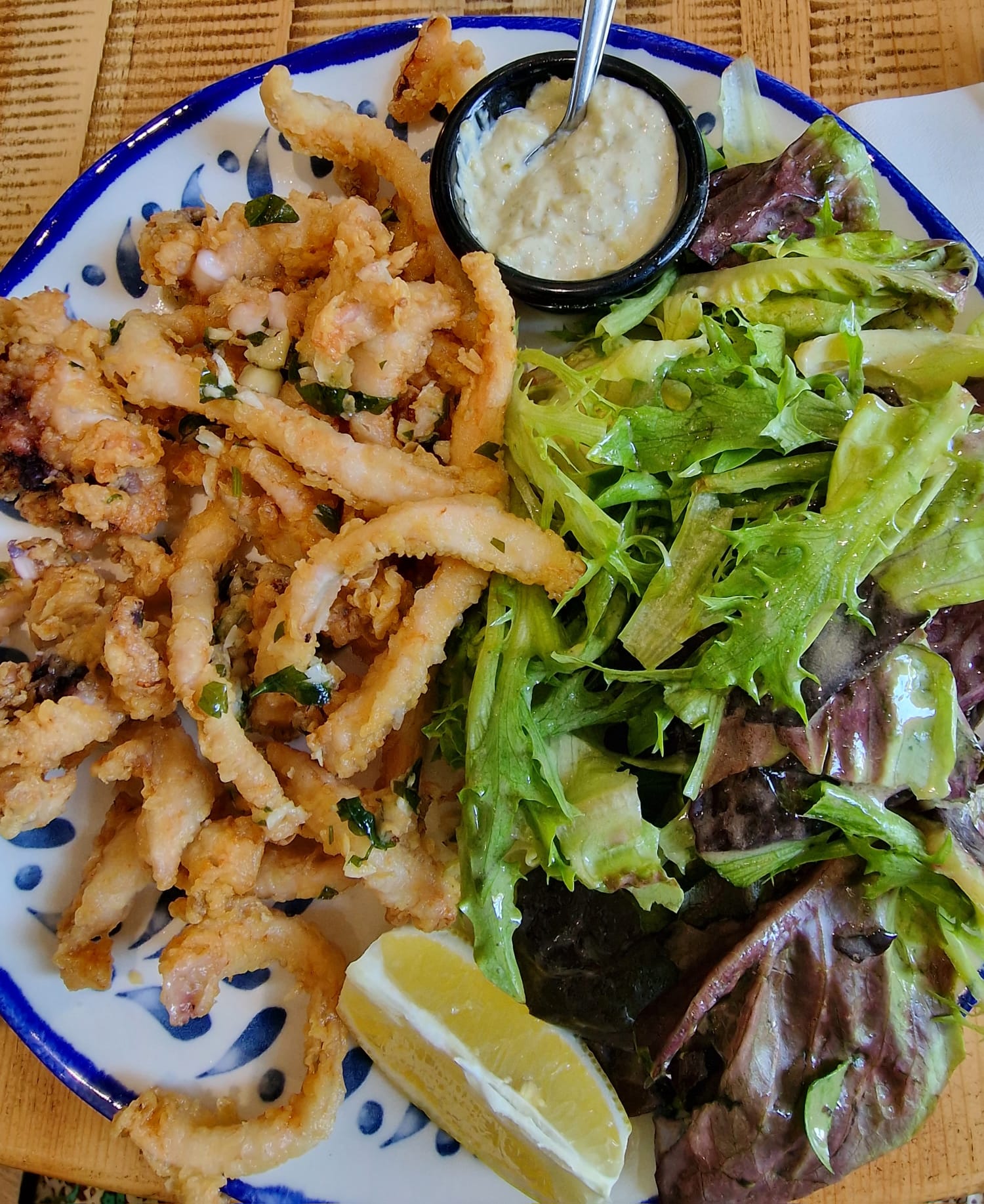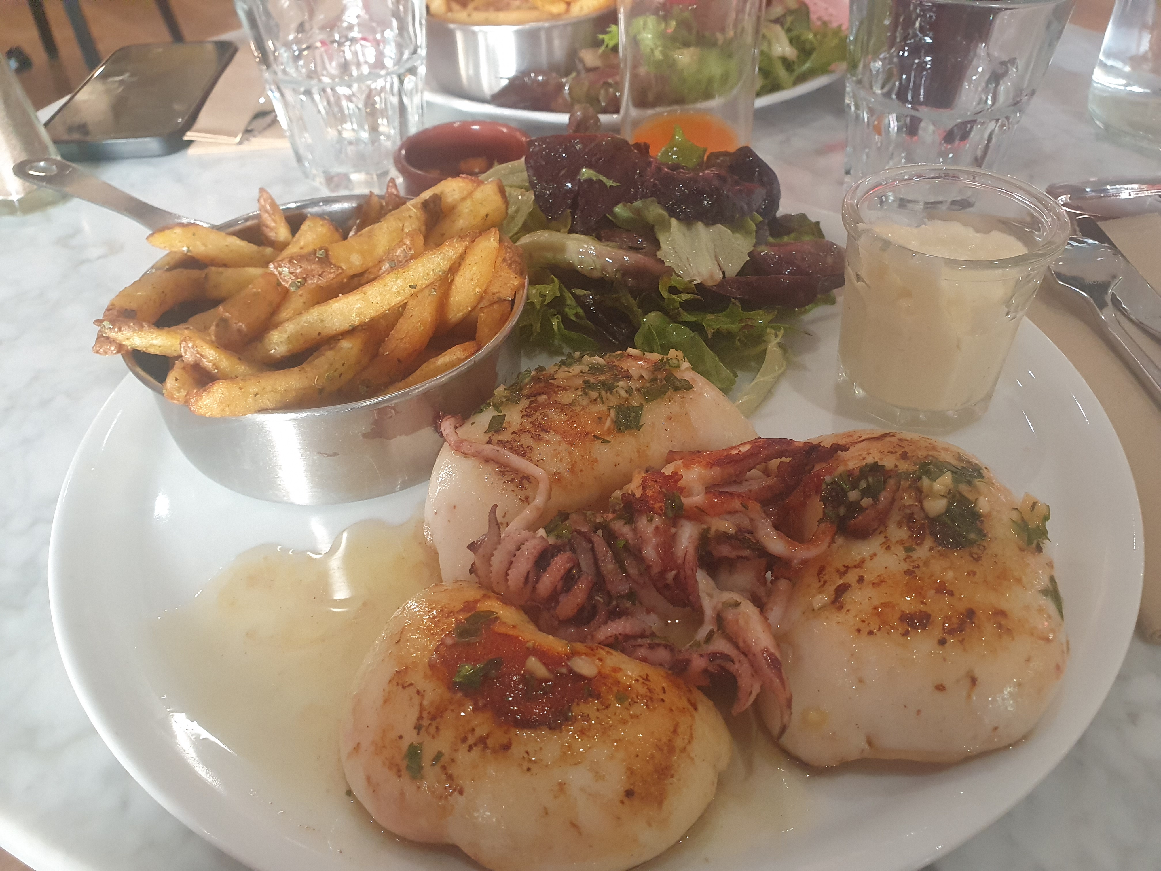 Je me suis régalé simple mais efficace. Seiches grillées, café gourmand, le tout avec un bon vin blanc
