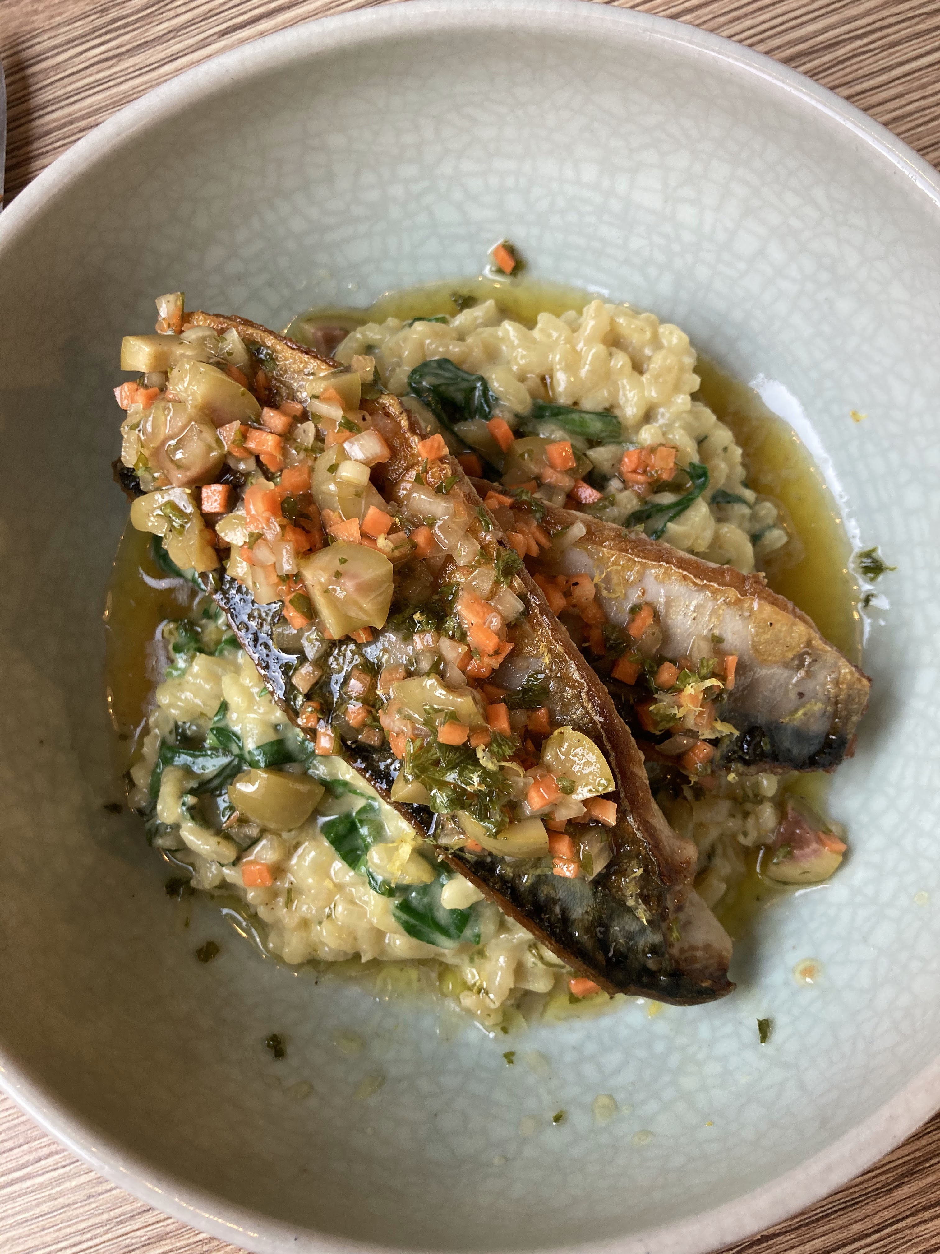 Tout était parfait, carte réduite pour une cuisine fraîche aux petits oignons. On se sent tout de suite bien et l’accueil est au top ! On sauce son assiette sans hésiter. Mieux vaut réserver ! Un plus pour le verre de vin à la sélection du chef (excellent). Merci ❤️🔥